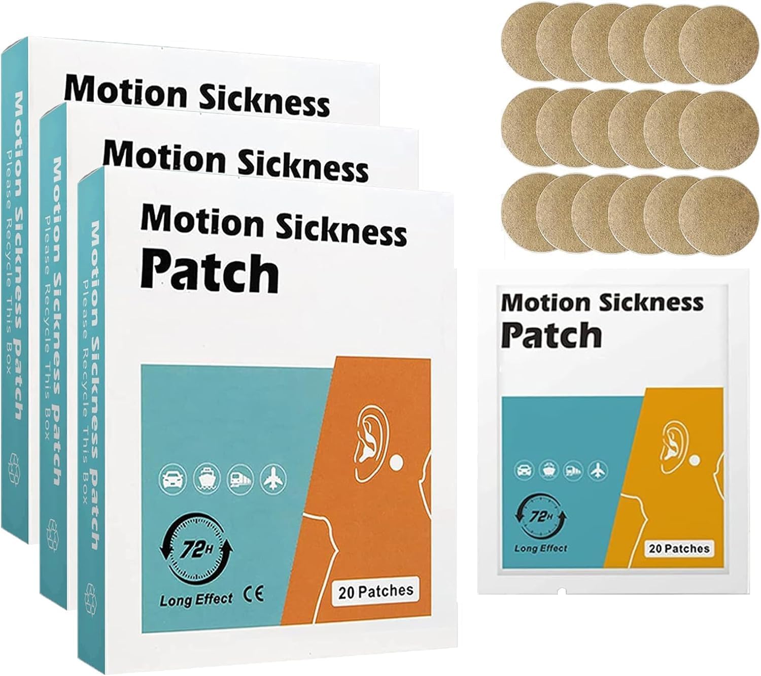 【Effective Against Vomiting】Patches for seasickness relieves the vomiting, nausea, dizziness, anorexia, and other symptoms resulted from sickness of cars, ships, airplanes, trains and other means of transport..【Safe&Effective】100% Natural Herb,no pills or side effects at all! The herbal formula is safe and effective for men, women, teens, and kids four years and up to relieve motion sickness. They offer complete relief without the side effects associated with pills and other medications..【Fast Acting&Long Lasting】Apply 10 minutes before the travel, nausea patch lasts about 1-3 days. The patch can be used behind the ear and on the navel at the same time if motion sickness is serious..【Simple to Use】Remove the white plastic backing from the tan-colored round patch, apply the adhesive surface to the dry and hairless area of skin on the navel or behind your earlobe, one motion sick patch behind each ear..【Easy to Carry Around】Our small and light packing was specially designed for great travel convenience.