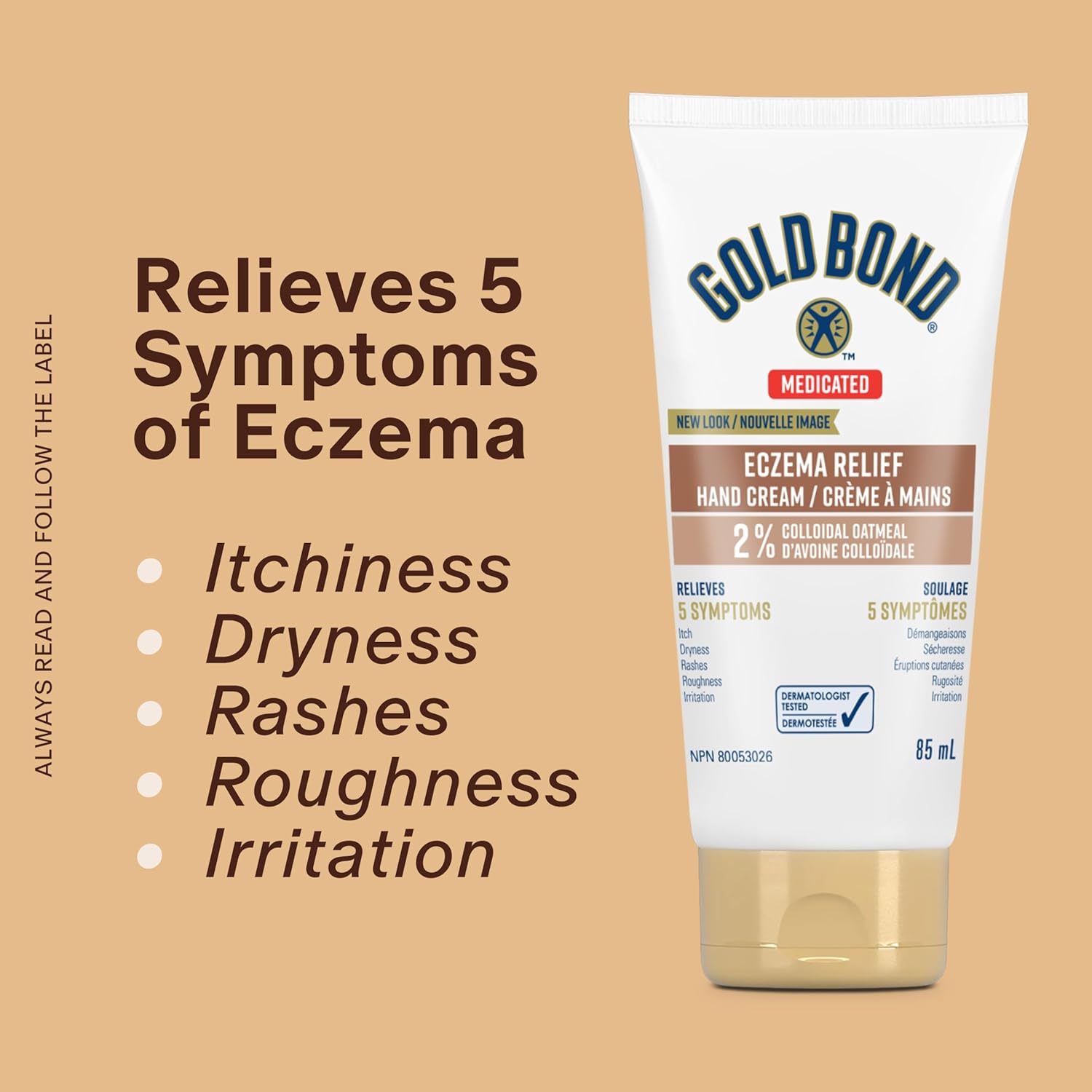 Gold Bond Medicated Eczema Relief Hand Cream, 85ml Tube, Steroid Free Moisturizing Hand Cream With 2% Colloidal Oatmeal to Relieve Rashes, Itching and Irritation Associated With Eczema