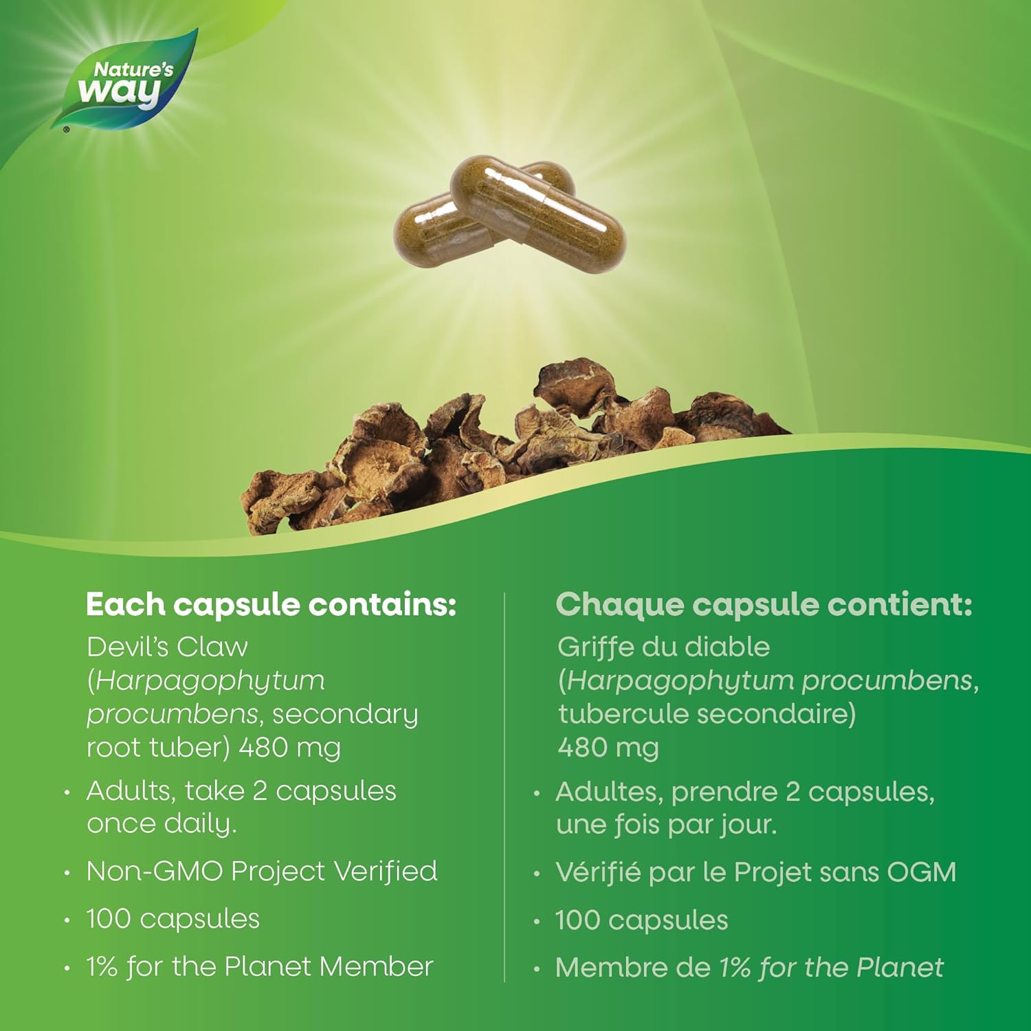 Nature's Way Devil's Claw, Natural Anti-Inflammatory, 100 Capsules