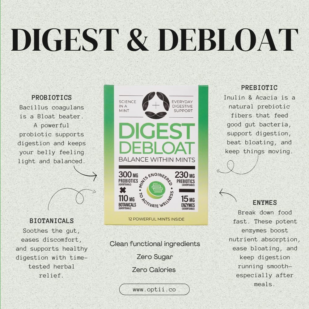 Optii Mint. Debloat & Digest Mints. 12 Piece. Sugar-Free