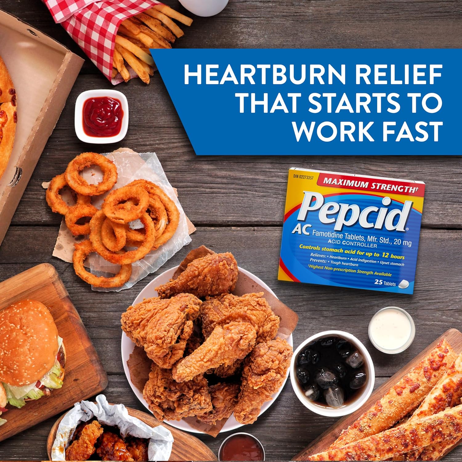 Pepcid Acid Controller, Maximum Strength Tablets, Acid Reducer for Heartburn, Acid Reflux and Upset Stomach Relief, 25 Tablets