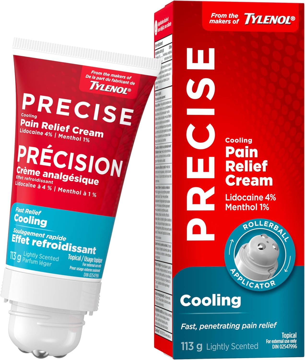 Precise Cooling Pain Relief Cream from the makers of Tylenol provides fast, effective pain relief precisely where you need it. Formulated with Lidocaine, an ingredient that targets pain receptor nerves to block pain signals, and Menthol, which produces a cooling sensation when topically applied to the skin, these ingredients work together to numb away pain with an instant cooling effect. The fast-absorbing, non-sticky cream is lightly scented and won't leave any residue behind on skin or clothes. For easy, mess-free application, the topical analgesic includes a massaging rollerball applicator. To use, adults and children 12 and older should apply the pain relief cream to affected areas no more than three to four times daily. Can be applied to: back, shoulders, legs, knees, elbows, ankles, and wrists.