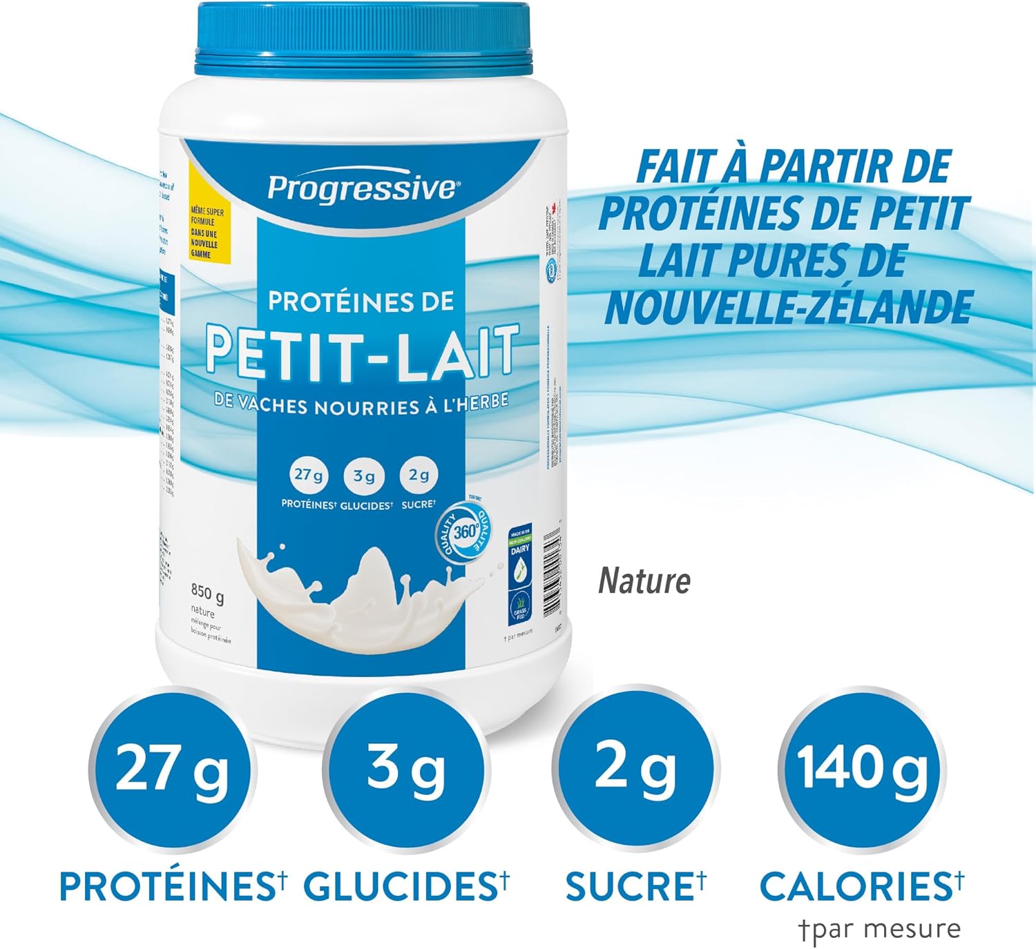 Progressive Grass-Fed 100% Whey Protein Powder Unflavoured, 27g of New Zealand Whey Concentrate per Scoop for Muscle Gain, Pasture-Raised, Non-GMO, Canadian-Made Antibiotic-free, Hormone-free, 850 g