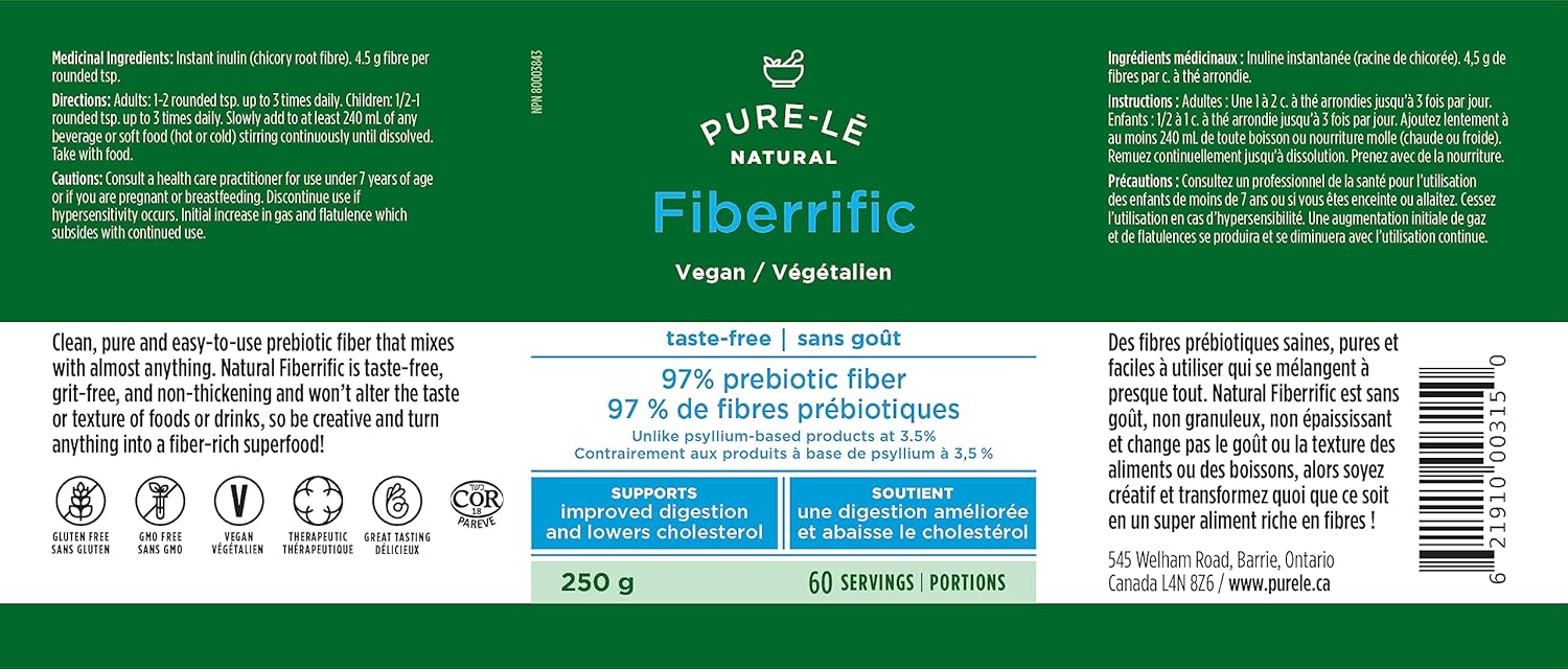Pure-lē Fiberrific | Inulin Prebiotic Fiber Supplement Powder | Supports Digestion, Gut & Intestinal Health, Regularity, Helps Reduce Bloating & Cholesterol | 60 Servings