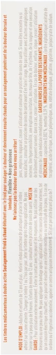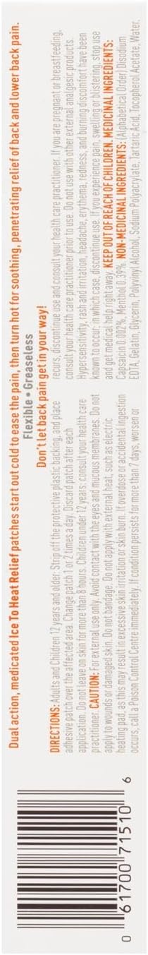 Experience dual-action pain relief with Rub-A535 Ice To Heat Relief patches. These patches start out cold to ease the pain, then turn hot for soothing and penetrating relief of back and lower back pain. Don't let back pain hinder your activities, as Rub A535 Back Ice to Heat patches can provide up to 8 hours of targeted pain relief. The flexible and greaseless patch format makes it a practical treatment solution for use at home, work, while out and about, or during travel. As your pain relief expert, Rub A535 offers a comprehensive range of products to address muscle and joint pain, arthritis, injuries, foot discomfort, and back pain. Proudly Canadian for over 90 years, Rub A535 is dedicated to helping Canadians effectively manage their pain.