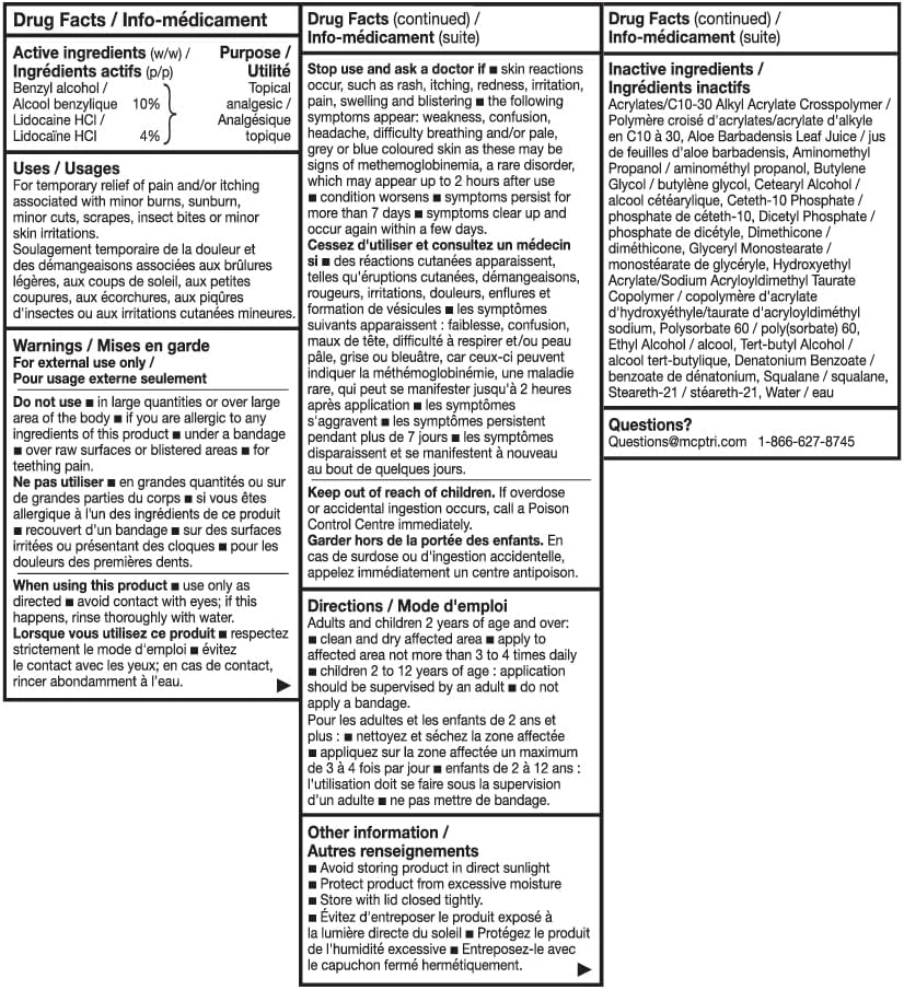 Salonpas Pain Relieving Solution with 4% Lidocaine HCl and 10% Benzyl alcohol.