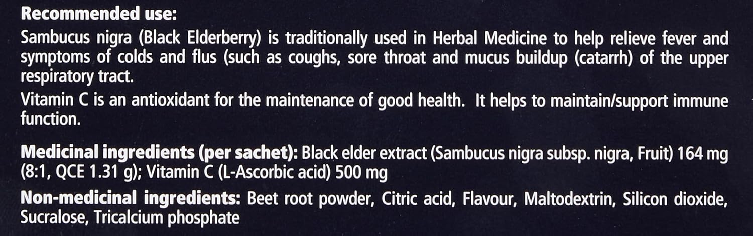 Get all of the immune-boosting, cold-and-flu-fighting benefits of Black Elderberries with a daily dose of Sambucol. For daily immunity (all ages): Dissolve 1 sachet in 100-200ml of water. Take once a day