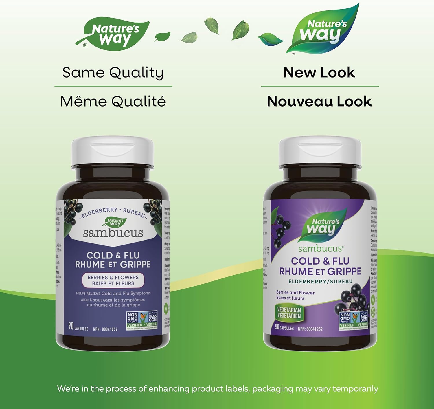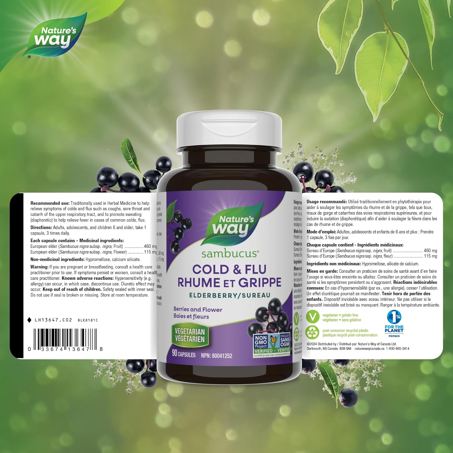 Cold and flu symptom relief: Nature's Way Sambucus elderberry cold and flu care capsules are traditionally used in herbal medicine to help relieve symptoms of colds and flus including coughs and sore throats. These effective capsules are used in herbal medicine to help promote sweating, to help relieve fever in cases of common colds, flus.
