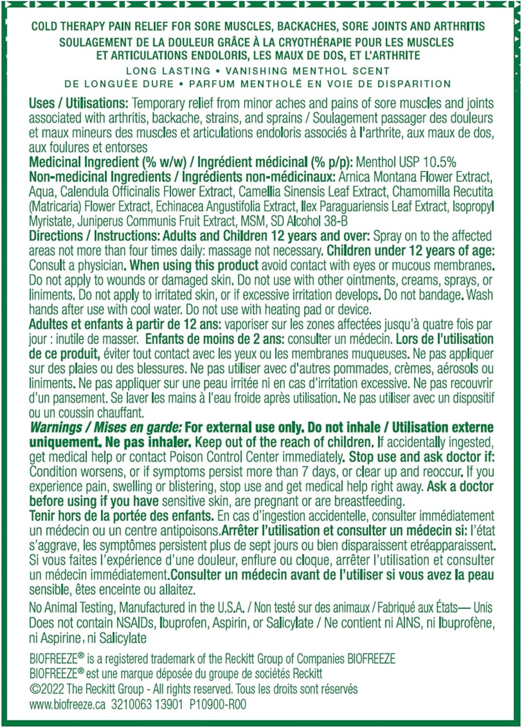 Biofreeze Menthol Pain Relieving Spray 360° aerosol spray features a continuous spray technology for a better flow even when upside down, making it easy to apply to hard-to-reach areas such as the middle back, neck, and lower extremities. Fast acting, cooling menthol formula delivers penetrating pain relief. There is no limit to what you can do when you cool your aches and pains. *Use as directed