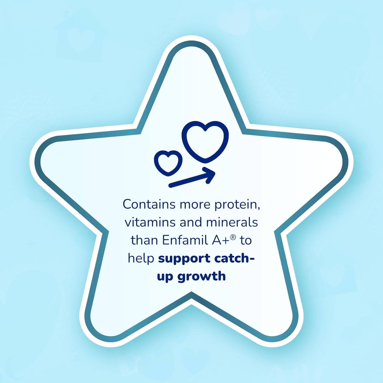 Enfamil A+ EnfaCare post-discharge from hospital baby formula is scientifically designed, with extra calories and increased nutrient levels, to support normal growth of low birth weight or premature babies.