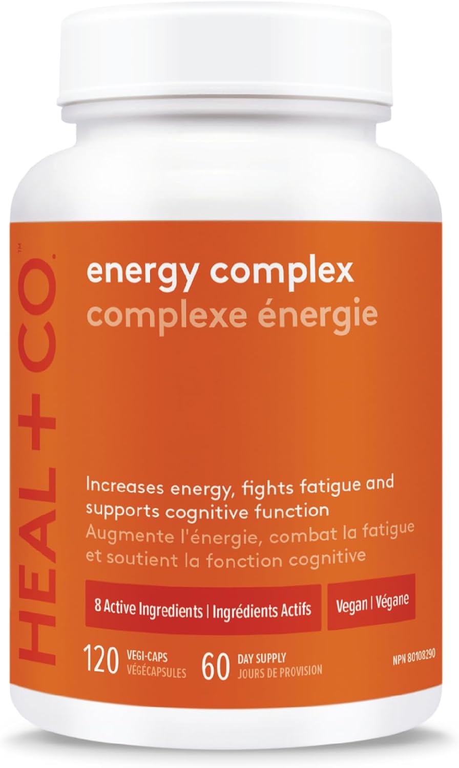 HEAL + CO. Energy Complex | 8 Active Ingredients Including Ashwagandha, Rhodiola + B Vitamins | Increase Energy + Fight Fatigue Supplement | 120 Capsules