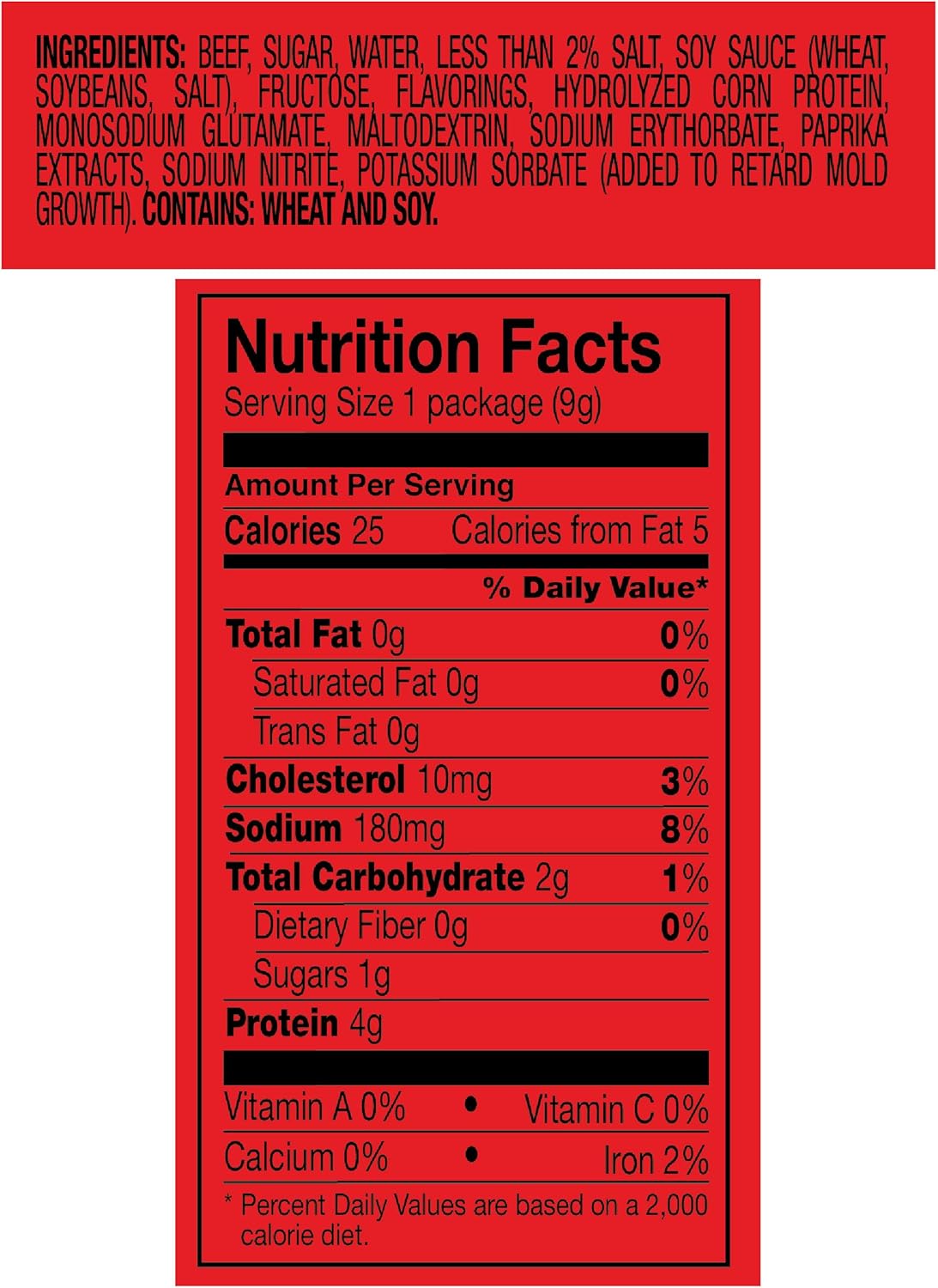 Cuisine: Japanese. Brand: Jack Links. Form: Chew. Appropriate Age Range: All Ages. Package Information: Bag. Manufacturer: Jack Links. Units: 217.68 Grams. Parcel Dimensions: 29.49 x 13.11 x 6.6 cm; 217.72 g. Item Weight: 217 g. ASIN: B001IZEDVS. Customer Reviews: 4.4 4.4 out of 5 stars 297 ratings 4.4 out of 5 stars. Best Sellers Rank: #10,887 in Grocery & Gourmet Food (See Top 100 in Grocery & Gourmet Food)#59 in Jerky. Date First Available: April 21 2012.