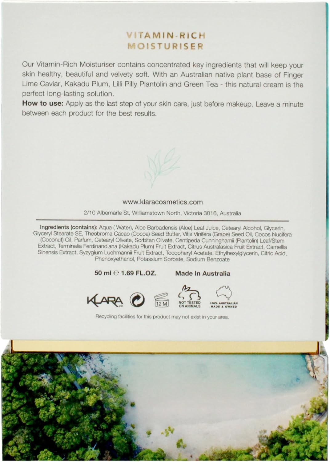 Klara Cosmetics Native Vitamin Rich Moisturizer - Facial Moisturizer with Green Tea and Lilli Pilli - Moisturizer Face Cream for Hydration - 50 ml