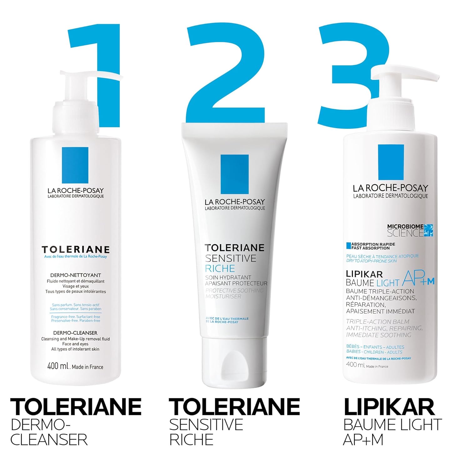 La Roche Posay Face Cream & Body Lotion BUNDLE, Toleriane Sensitive Cream & Lipikar Baume LIGHT AP+M, Hydration for Face & Body, Suitable for Sensitive, Dry to Very Dry Skin, Fragrance-Free