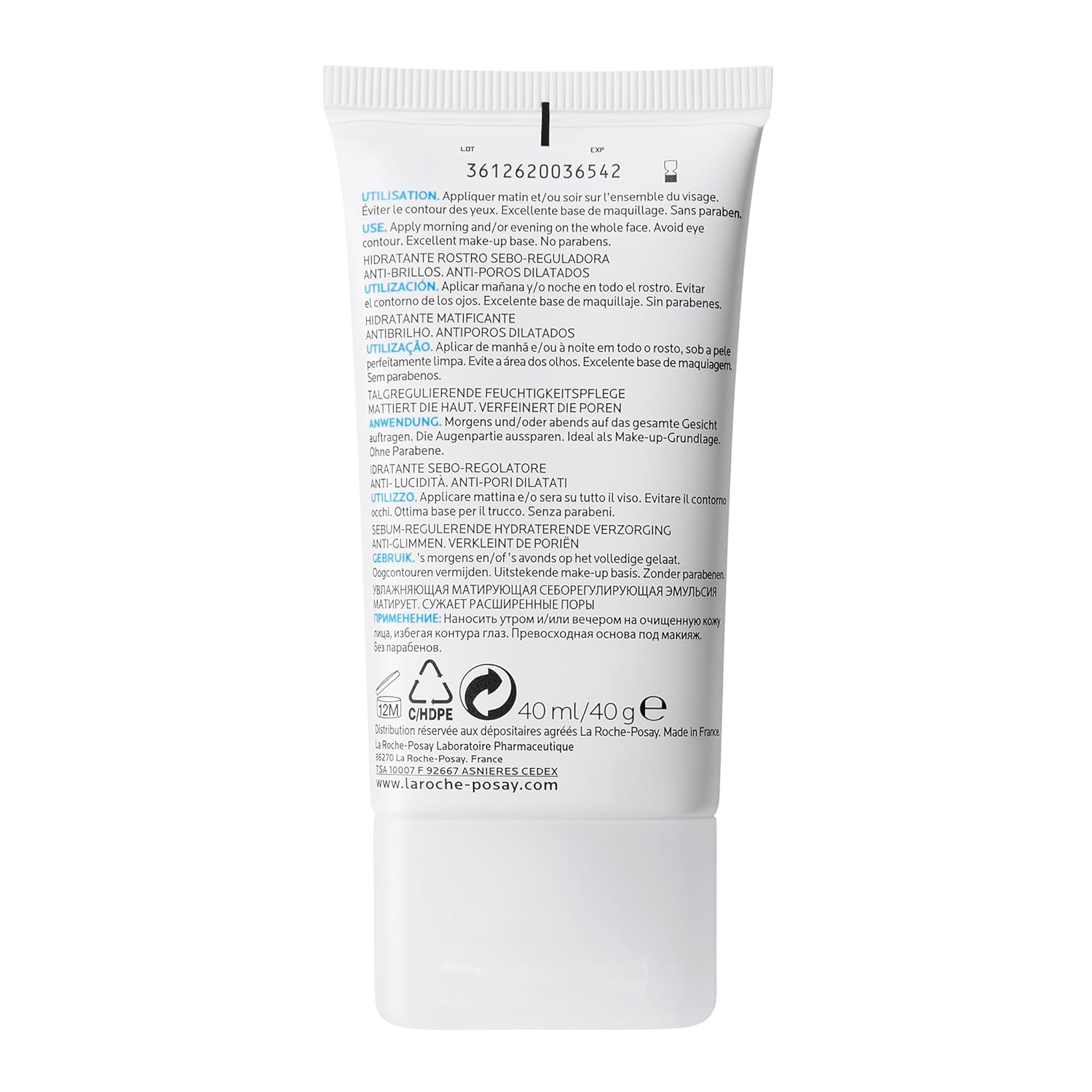 La Roche-Posay FACE MOISTURIZER, Effaclar Mat Mattifying Balancing Zinc for Oily or Acne prone Skin with Glycerin, Salicylic Acid. Anti Shine, Anti-Enlarged pores. Paraben-Free, Travel Size, 40ml
