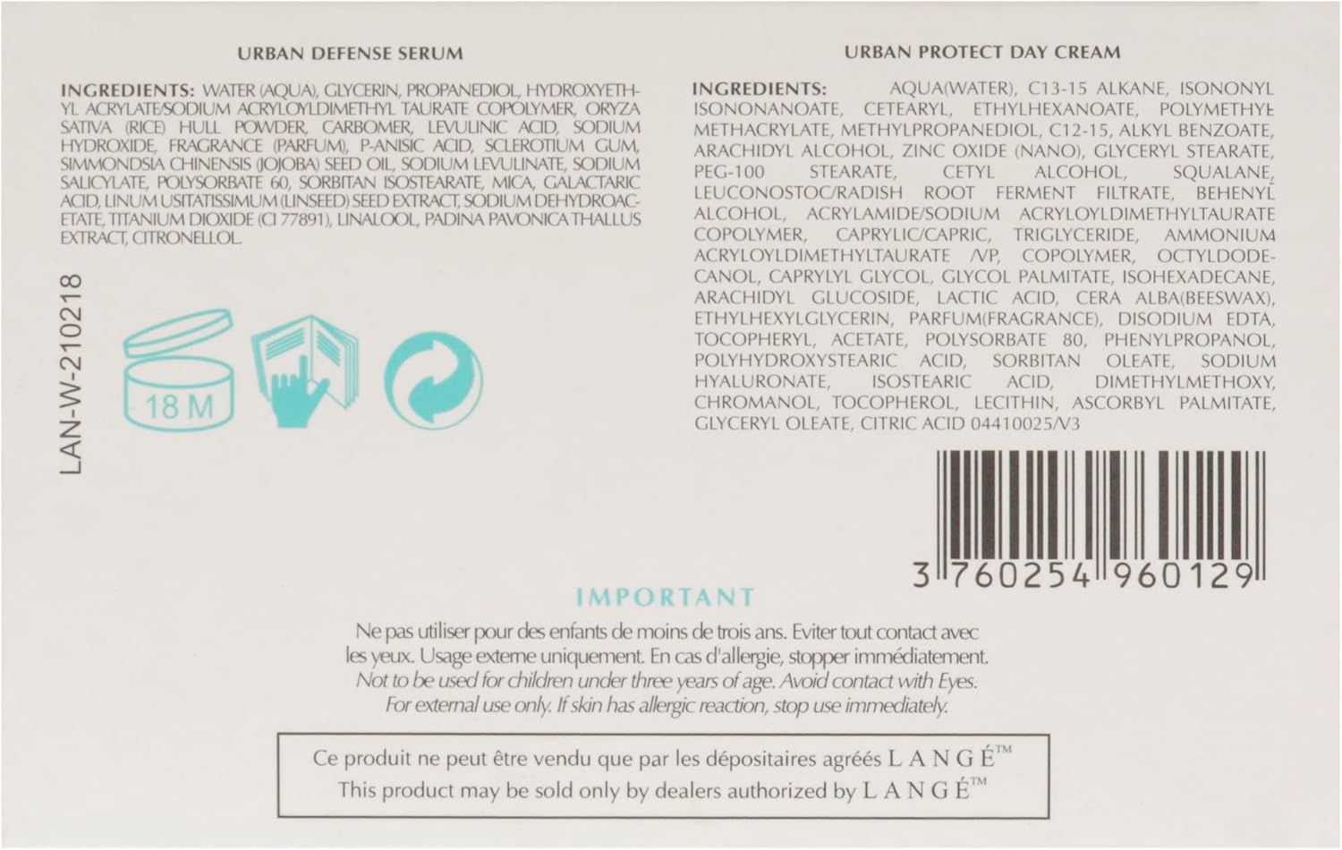Lange Essential Survival Set 1.7oz Urban Protect Day Cream, 0.68oz Urban Defense Serum Unisex 2 Pc