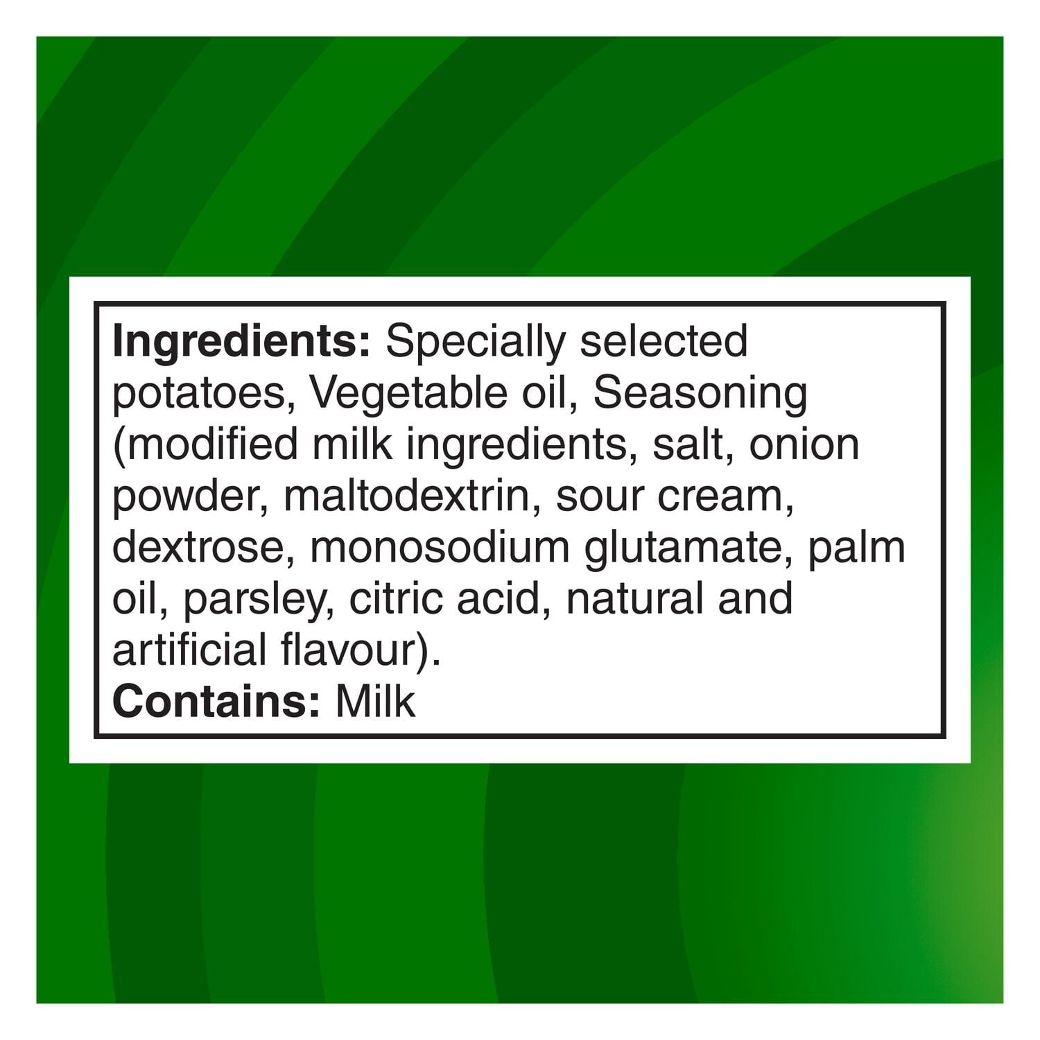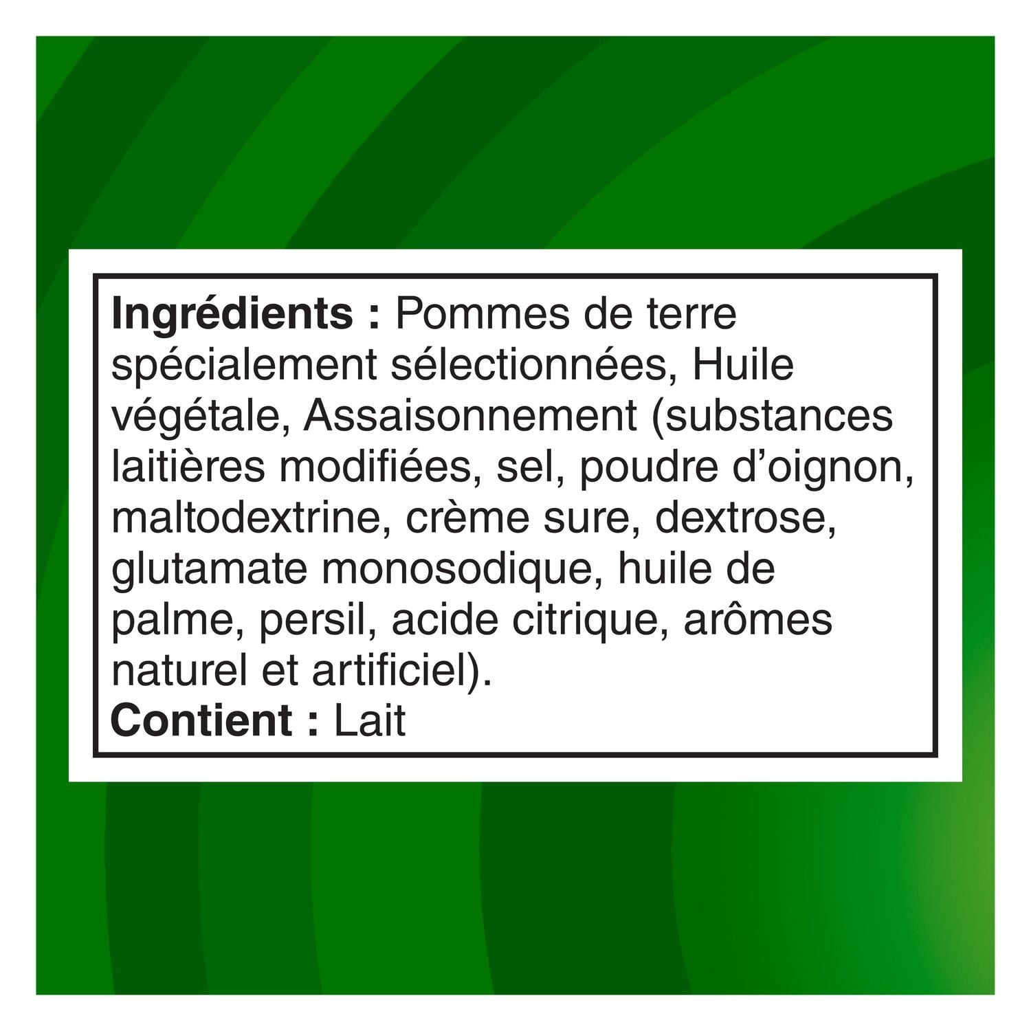 Tempt your taste buds with a flavourful sensation found in Lay's Sour Cream & Onion flavoured potato chips. These chips offer smooth flavour that will delight your taste buds, making them perfect for sharing. The aromatic onion flavour contrasts with the creaminess of the sour cream and gives you a delicious flavour combination in your mouth. Loved for years, it’s the creamy and tangy chip flavour that never goes out of style. Snack time just isn’t complete without the timeless taste of Lay’s potato chips! With many flavours to choose from, Canadians have been enjoying Lay's products for many years. Lay’s potato chips are made with quality potatoes. Simple, wholesome and real. After carefully washing, peeling and slicing the potatoes, we cook them until they are perfectly crispy, creating the wonderful potato chips that Canadians know and love. Gluten-Free.