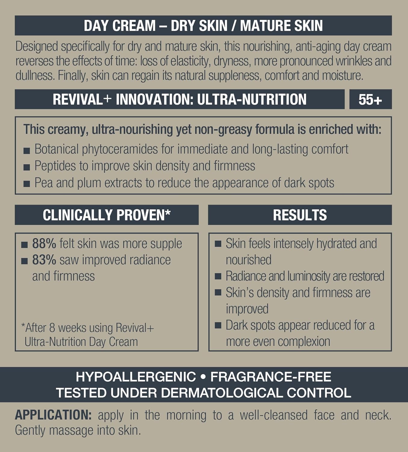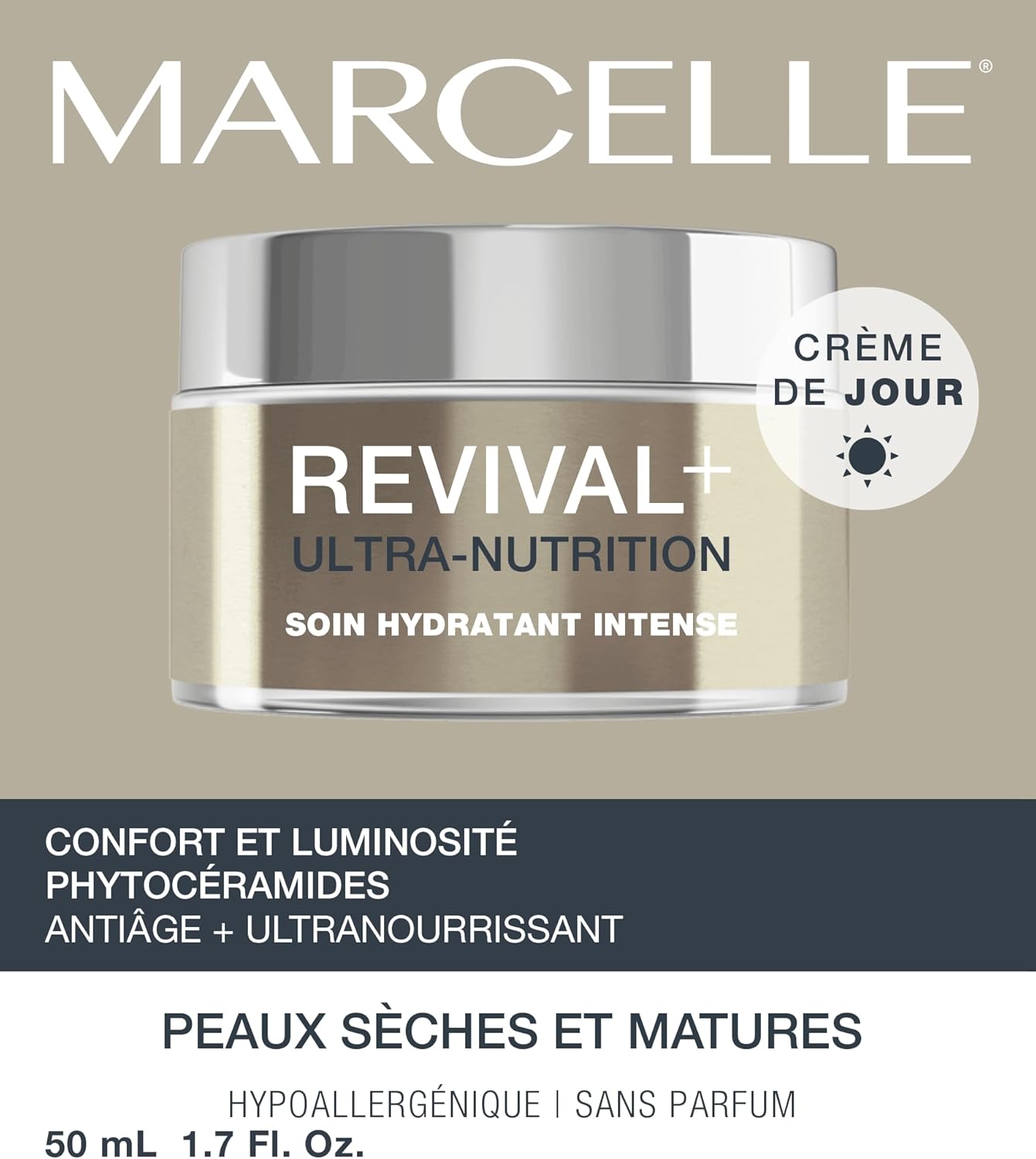 Marcelle Revival+ Ultra-Nutrition Anti-Aging Day Cream, Dry Skin, Mature Skin 55+, Intensely Nourishing, Comfort & Radiance, Cruelty-Free, Vegan, Hypoallergenic, Paraben-Free, Fragrance-Free, 50 mL