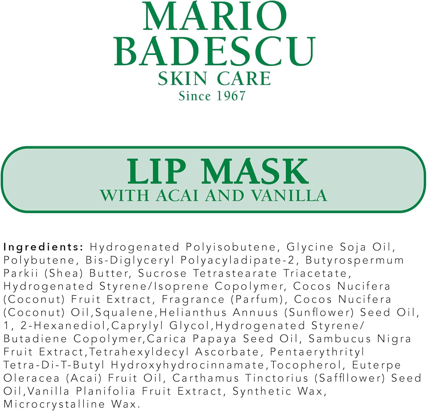 Mario Badescu Lip Mask with Acai and Vanilla for All Skin Types, Overnight Lip Treatment Enriched With Skin Softening Coconut Oil and Hydrating Shea Butter, 0.5 Ounces
