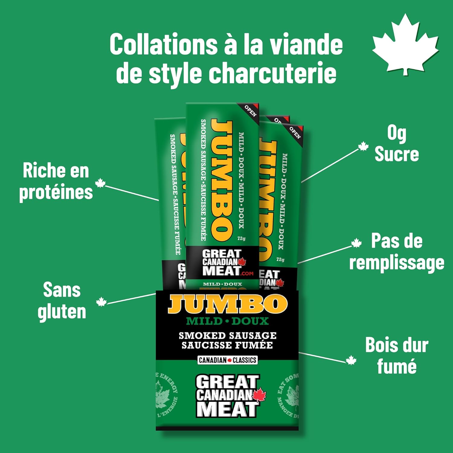 Mild Jumbo Smoked Sausages Locally Made & Hardwood Smoked, 10 x 72g Caddy of Meat Snacks by Great Canadian Meat, Gluten Free, High In Protein Meat Sticks, Sausage Pepperoni Sticks For Carnivores. MRE Perfect For Camping …