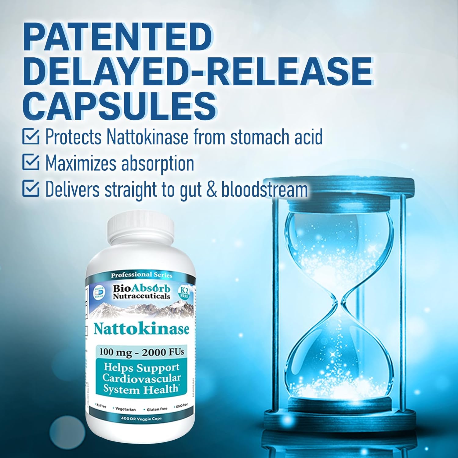 Nattokinase Supplement. Non-GMO Natto Extract Enzyme. 100 mg, 2000 FUs. 400 Veggie Caps (400-day supply)
