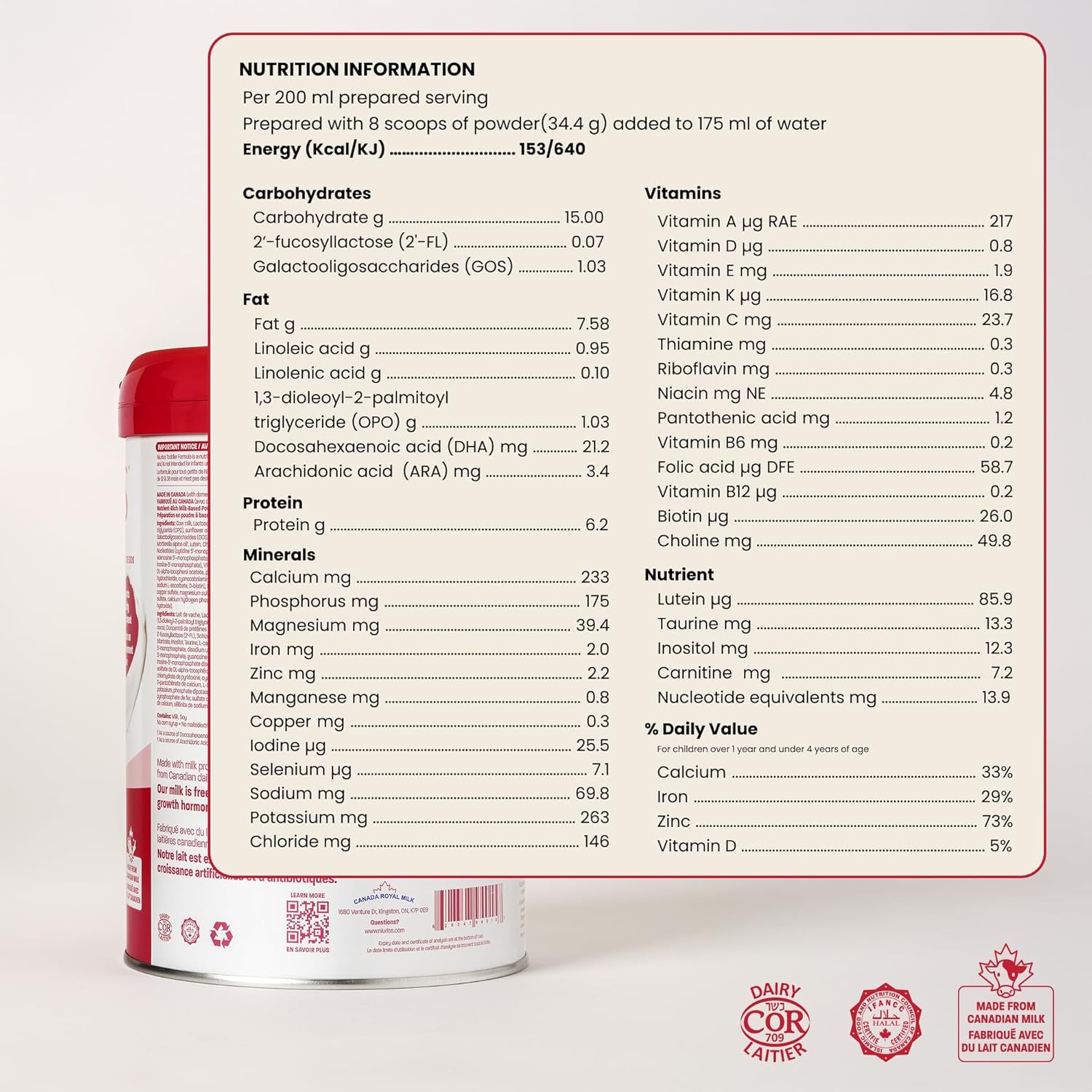 NIURISS Toddler Formula - With 27 micronutrients, OPO Lipids and GOS fiber. Toddler formula made in Canada from Canadian milk - Certified Kosher and Halal - 12-36 mo. 900g
