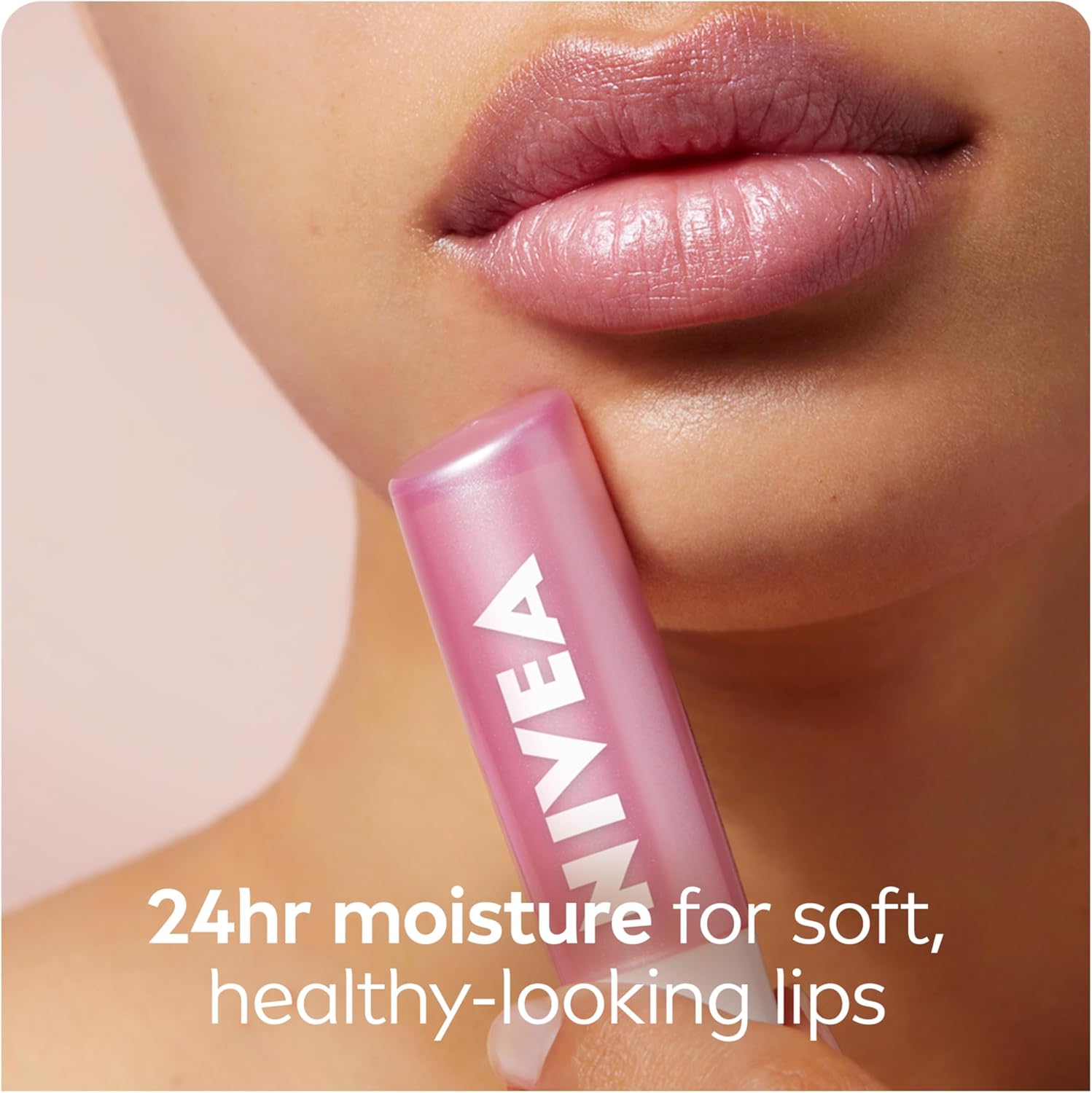 NIVEA Pearly Shine Lip Balm | Pearly Pink Shimmer Tinted Lip Care, 24H Hydration | 2x4.8g Tubes