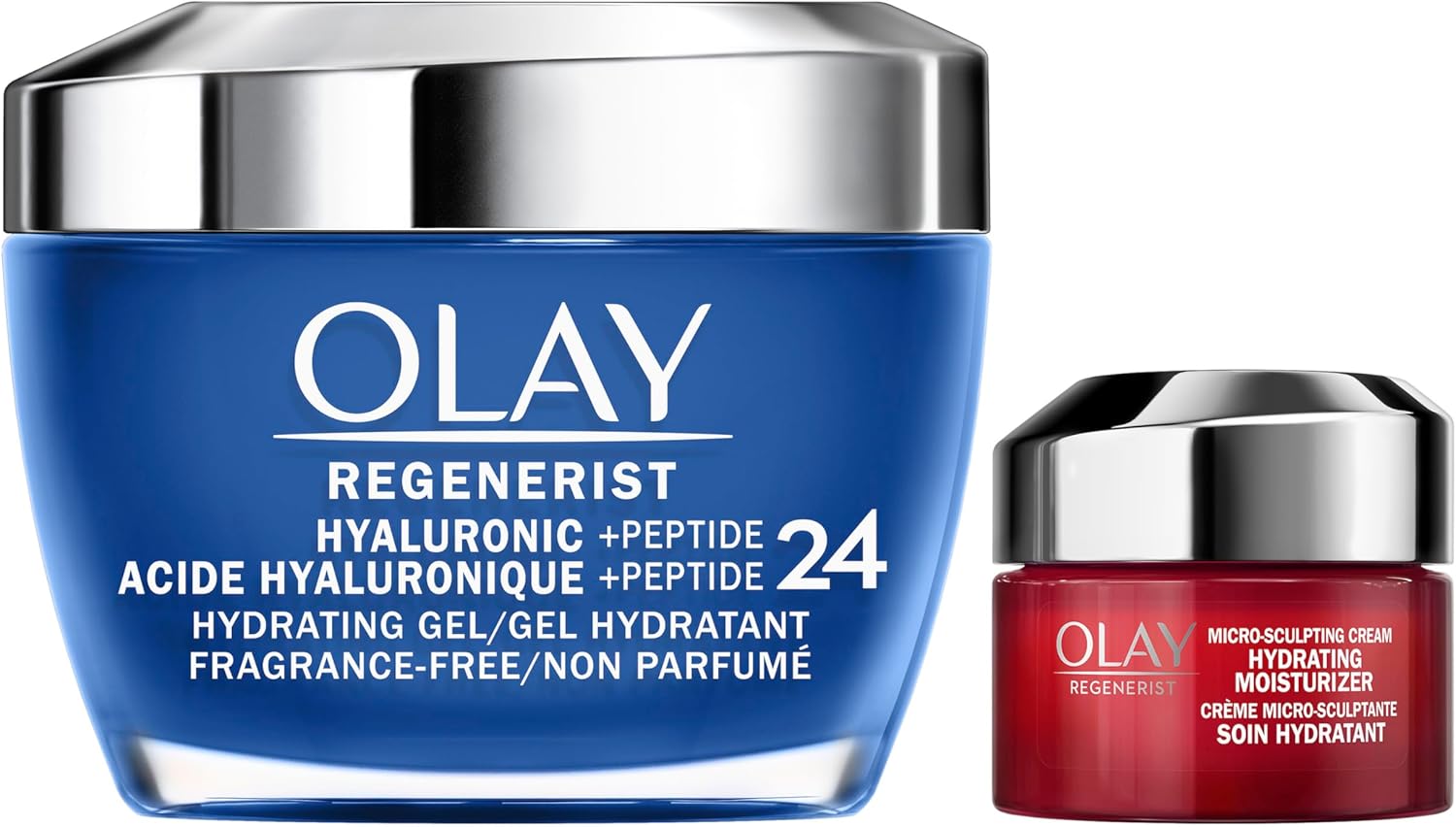 Olay Regenerist Hyaluronic Acid + Peptide24 Gel Face Moisturizer, Fragrance-Free, 50 mL + Olay Regenerist Micro-Sculpting Cream Travel Size, 15 mL
