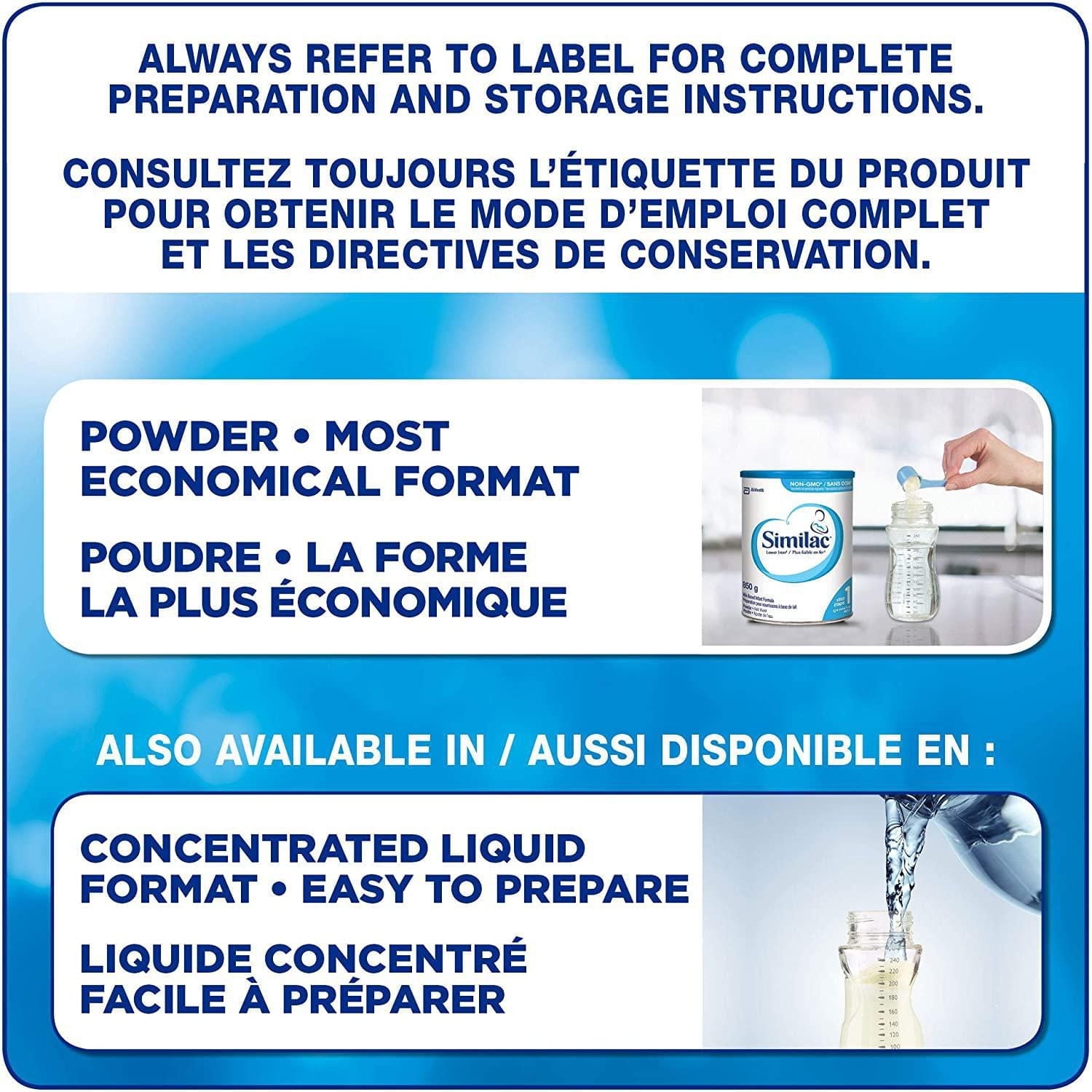 Similac® Lower Iron is a nutritionally complete†, non-GMO* baby formula. Your health care professional may recommend this lower-iron, milk-based formula for your baby. Compared to other Similac® formulas, which contain 1.2 mg of iron per 100-mL serving, Similac® Lower Iron contains 0.65 mg of iron per 100 mL of formula. You can feed Similac® Lower Iron to your baby with confidence. It is designed to be easy for your baby to digest† and helps support your baby's normal growth and development. Similac® Lower Iron is available in this easy-to-scoop powder format and in an easy-to-prepare concentrated liquid format. Here's to happy babies!
