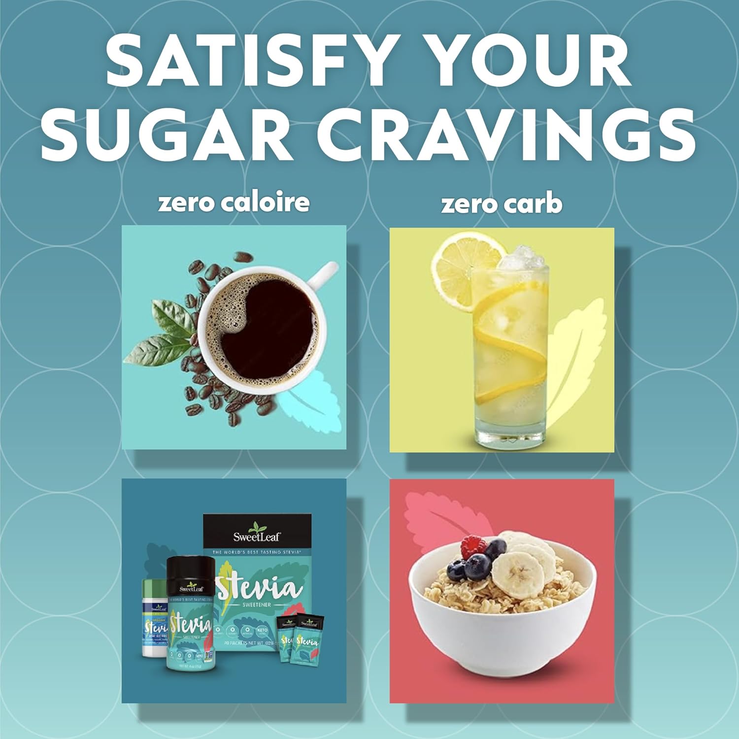 SweetLeaf is the only zero-calorie, zero-carb, zero-glycemic index, 100% natural stevia sweetener there is. Grown sustainably, SweetLeaf provides the delicious sweet taste you crave. No chemicals. No additives.