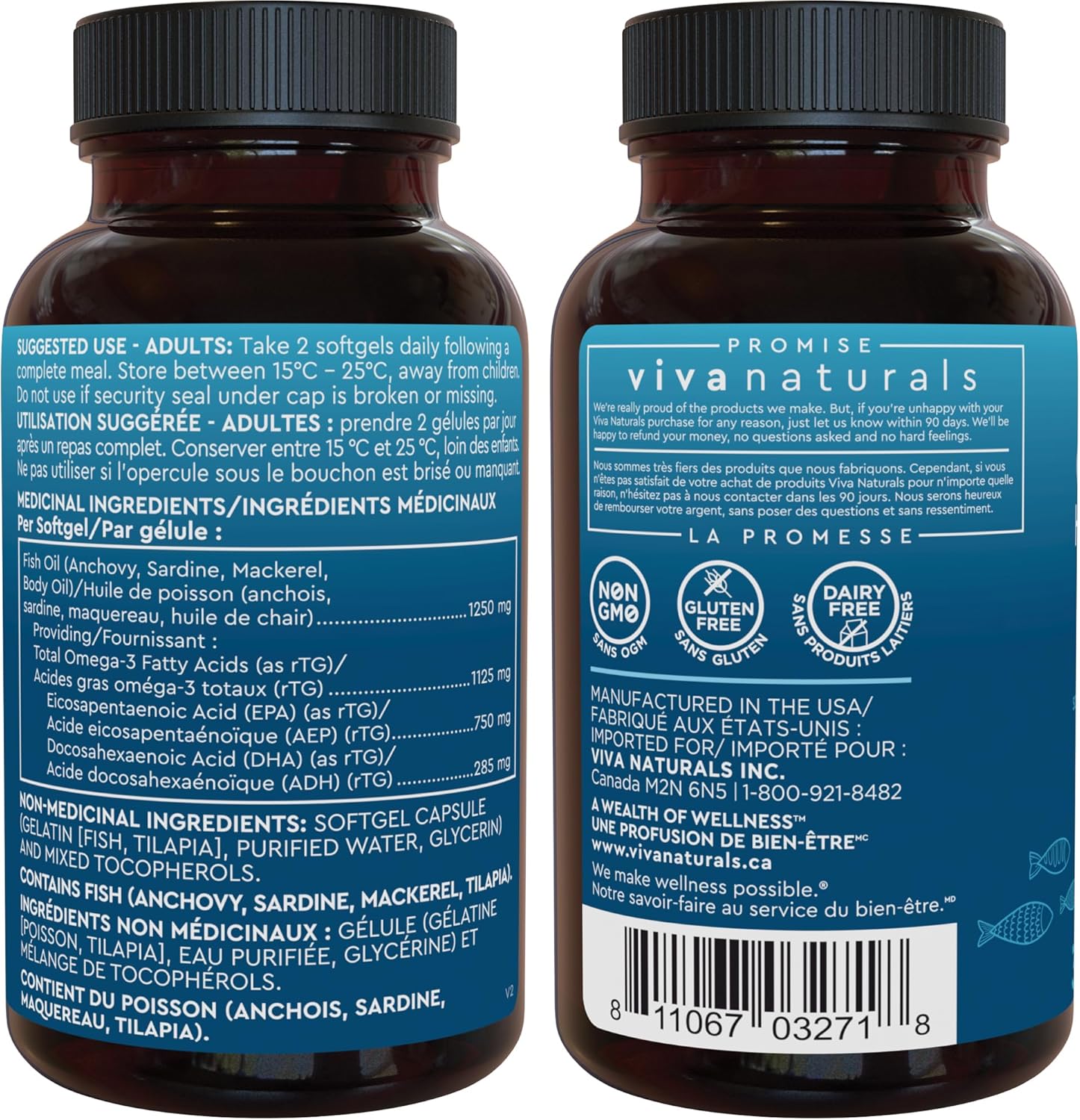 Viva Naturals Organic Maca Powder 1lb+Triple Strength Omega-3 Fish Oil 2500mg—Gelatinized Peruvian Maca Root for Energy + Omega-3 with EPA & DHA for Brain & Heart Health—Vegan, Gluten-Free, Non-GMO
