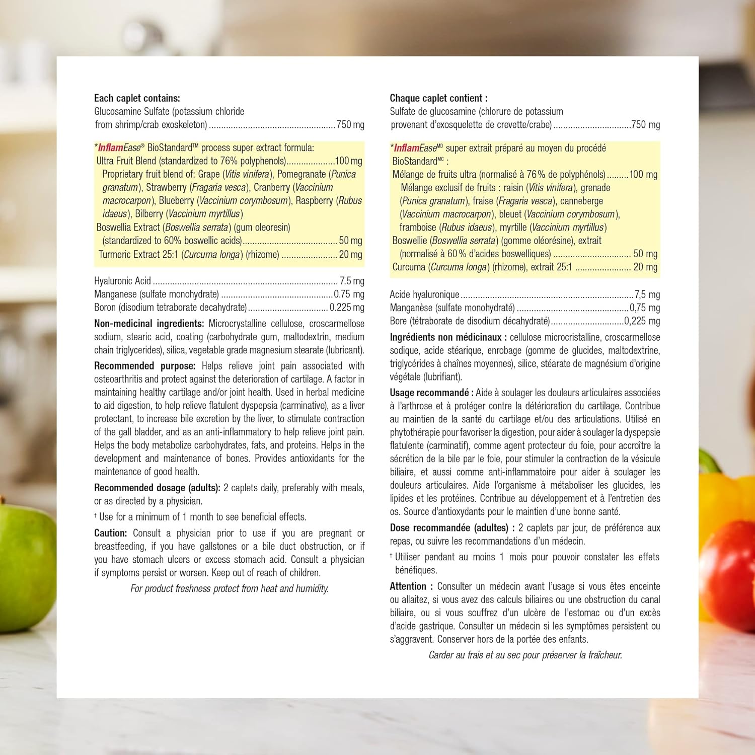 Joint protection and relief beyond the basics with Osteo Joint Ease is provided by combining glucosamine sulfate with InflamEase, a potent antioxidant fruit and nutrient complex that fights pain-causing inflammation. Two caplets per day provide the key nutrients to ease joint pain and support healthy cartilage.
