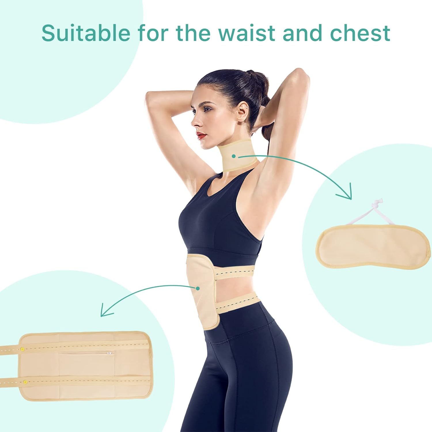 2 Pack Castor Oil Pack Wrap, Reusable Organic Castor Oil Pack Kit for Waist and Thyroid Neck, Castor Oil Packs for Liver Detox with Adjustable Elastic Strap Bamboo Cotton Machine Washable Anti Oil Leak (Premium Khaki Set)