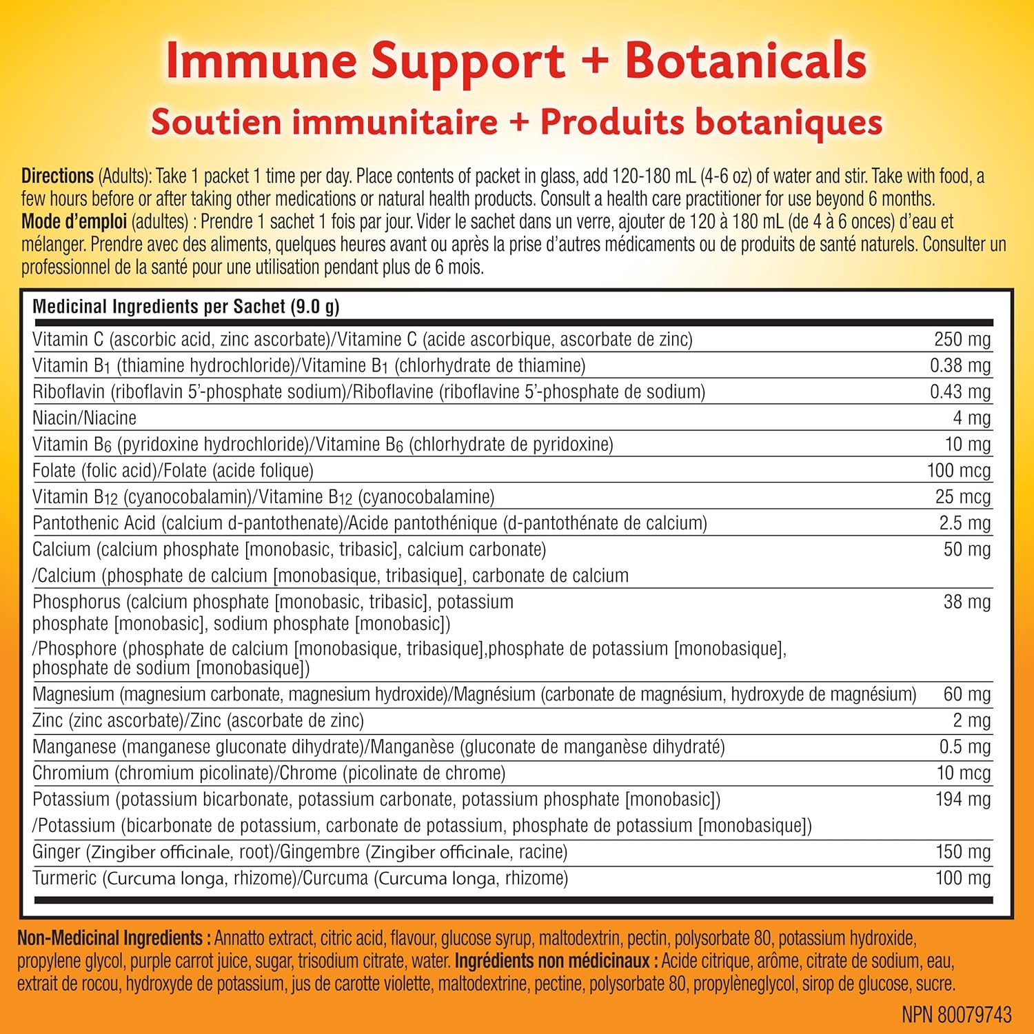 Great for use all year round, Emergen-C packs a fizzy punch full of vitamins, antioxidant, and electrolytes that help support your immune health at home, in the office, or on the go. Each dose delivers 1,000 mg of vitamin C, which is more vitamin C than 10 oranges (based on Health Canada Nutrient Value of Common Foods, Orange). Ideal for maintaining immune function and helping support energy production, Emergen-C includes seven B vitamins and other electrolytes to replenish your body after working out. Caffeine free and made with natural flavours, Emergen-C is easy to use — just dissolve Emergen-C drink mix powder in cold or warm water (4 to 6 ounces), watch it fizz, mix, and enjoy.