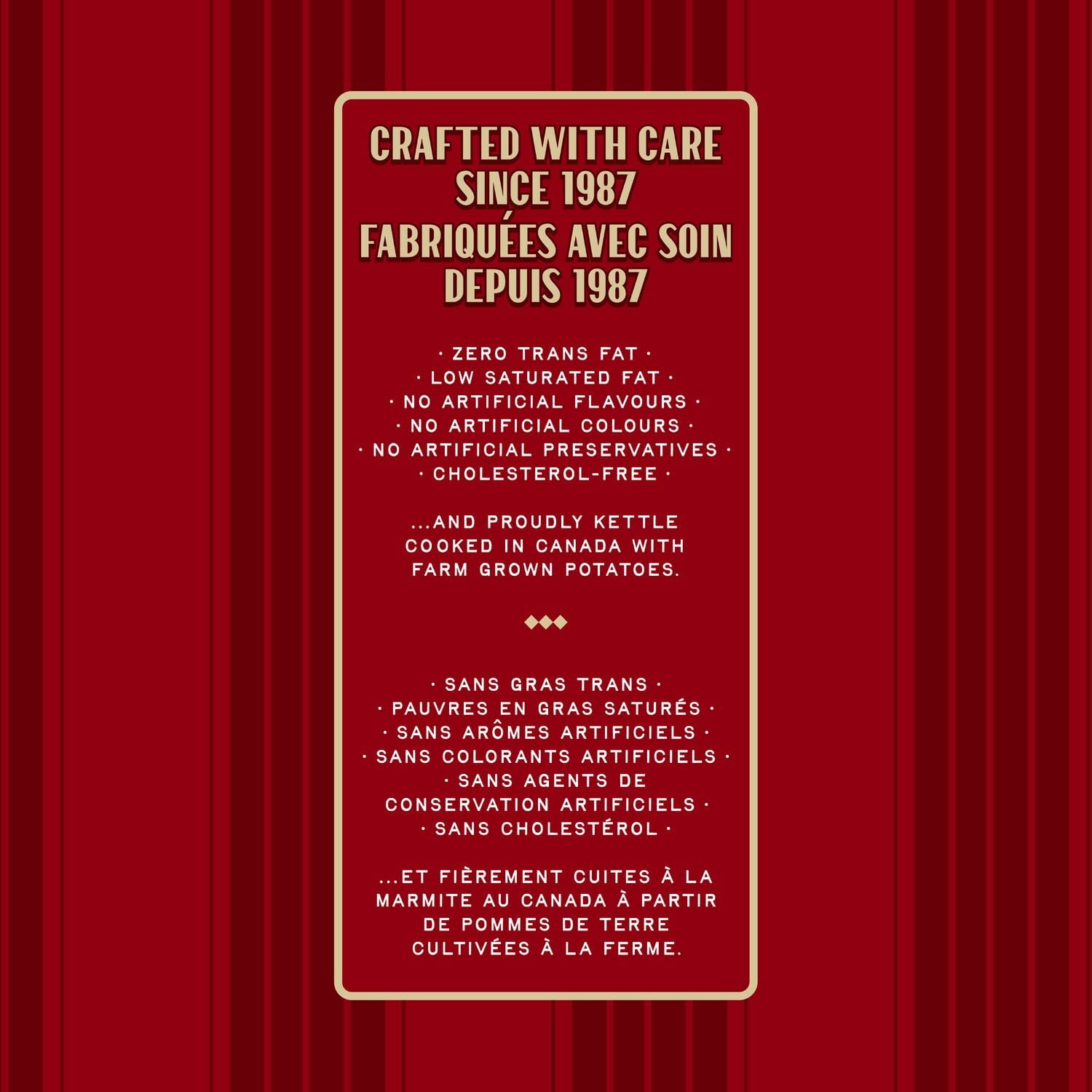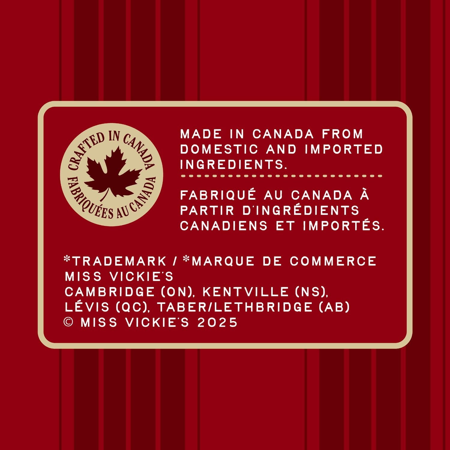 Celebrate some of Canada's best Italian restaurants with Miss Vickie's Spicy Pepperoncini & Focaccia flavoured kettle cooked potato chips. Enjoy the tangy, spicy taste, along with Miss Vickie's signature crunch and texture in this delicious snack. These chips contain zero trans fat and are low in saturated fat; they also have no artificial flavours, no artificial colours, and no artificial preservatives. They are cholesterol-free and kosher certified. From Miss Vickie's Limited Edition Ristoranti Series, featuring Nora Gray. Crafted in Canada from domestic and imported ingredients.