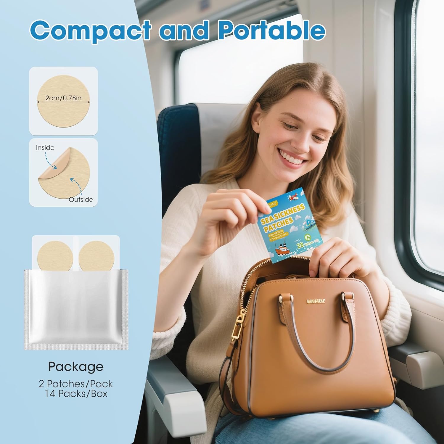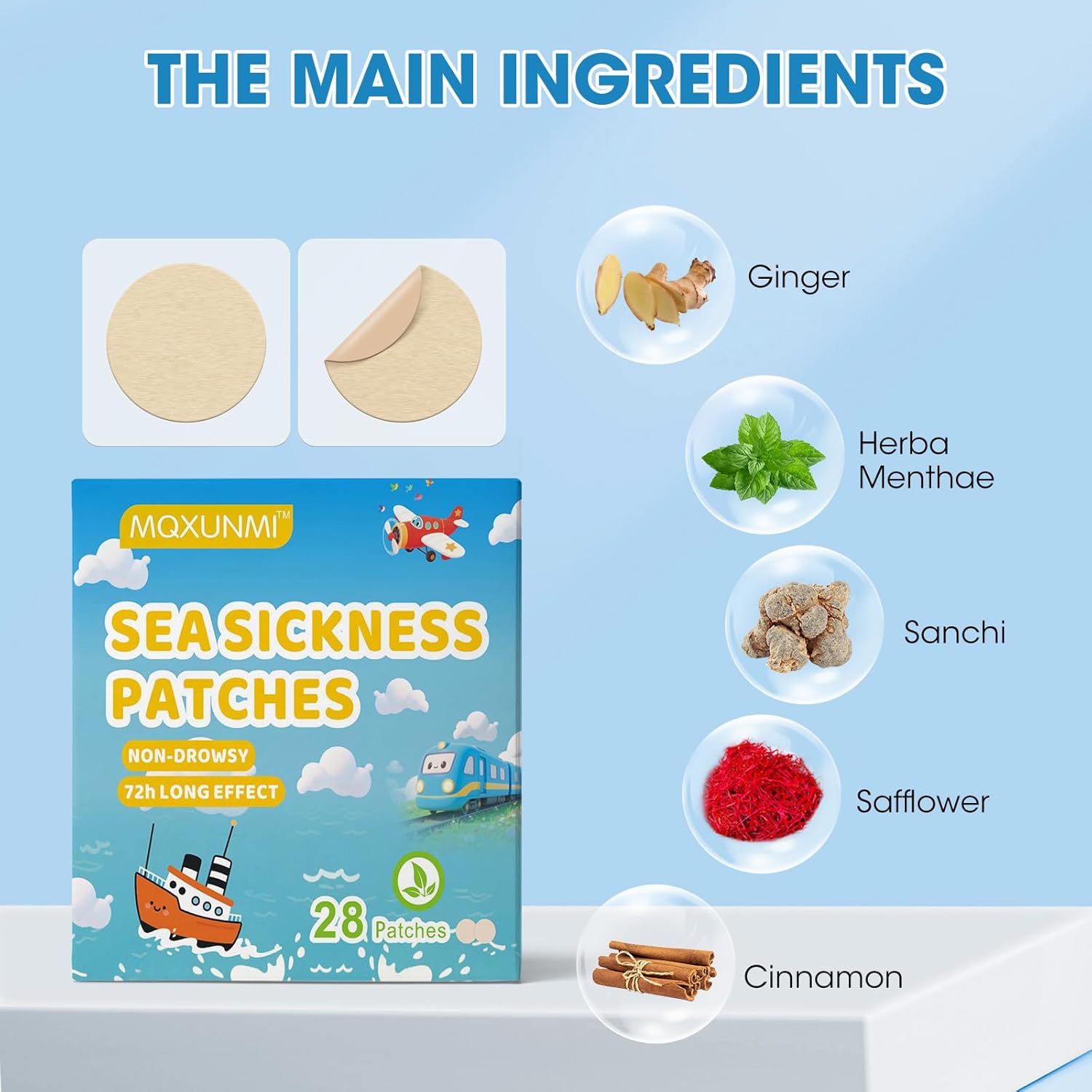 MQXUNMI Sea Sickness Patch for Cruise, 28 Count Motion Sickness Patches- Relieves Dizziness from Seasickness and carsickness, Suit for Travel of Car and Boat Rides, Cruise and Airplane