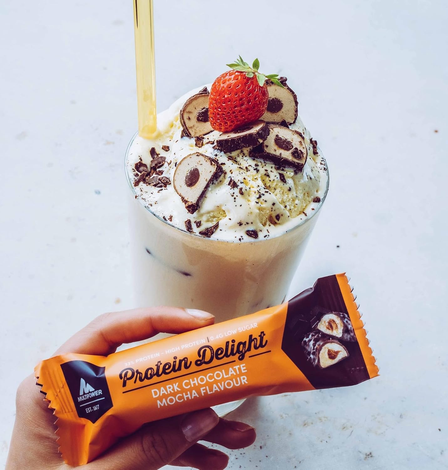 Multipower Protein Delight Bar - Dark Chocolate Mocha Flavor - High-Protein Snack Bar - 35g Bars (18 Pack)
