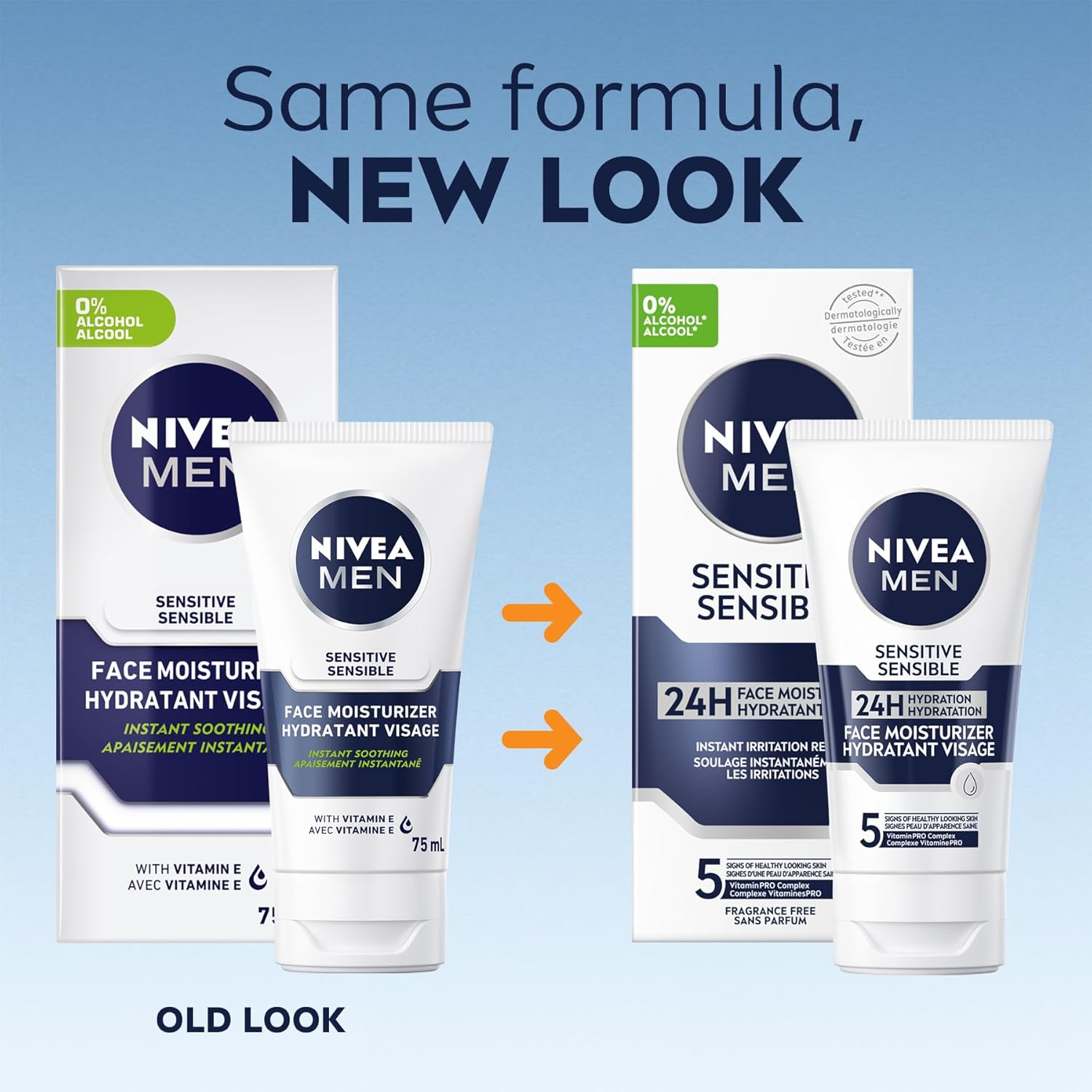 NIVEA MEN Sensitive Face Moisturizer, Men's Face Cream with Chamomile and Vitamin E, No Drying Alcohol, Dermatologically-Tested Skin Care, 75mL
