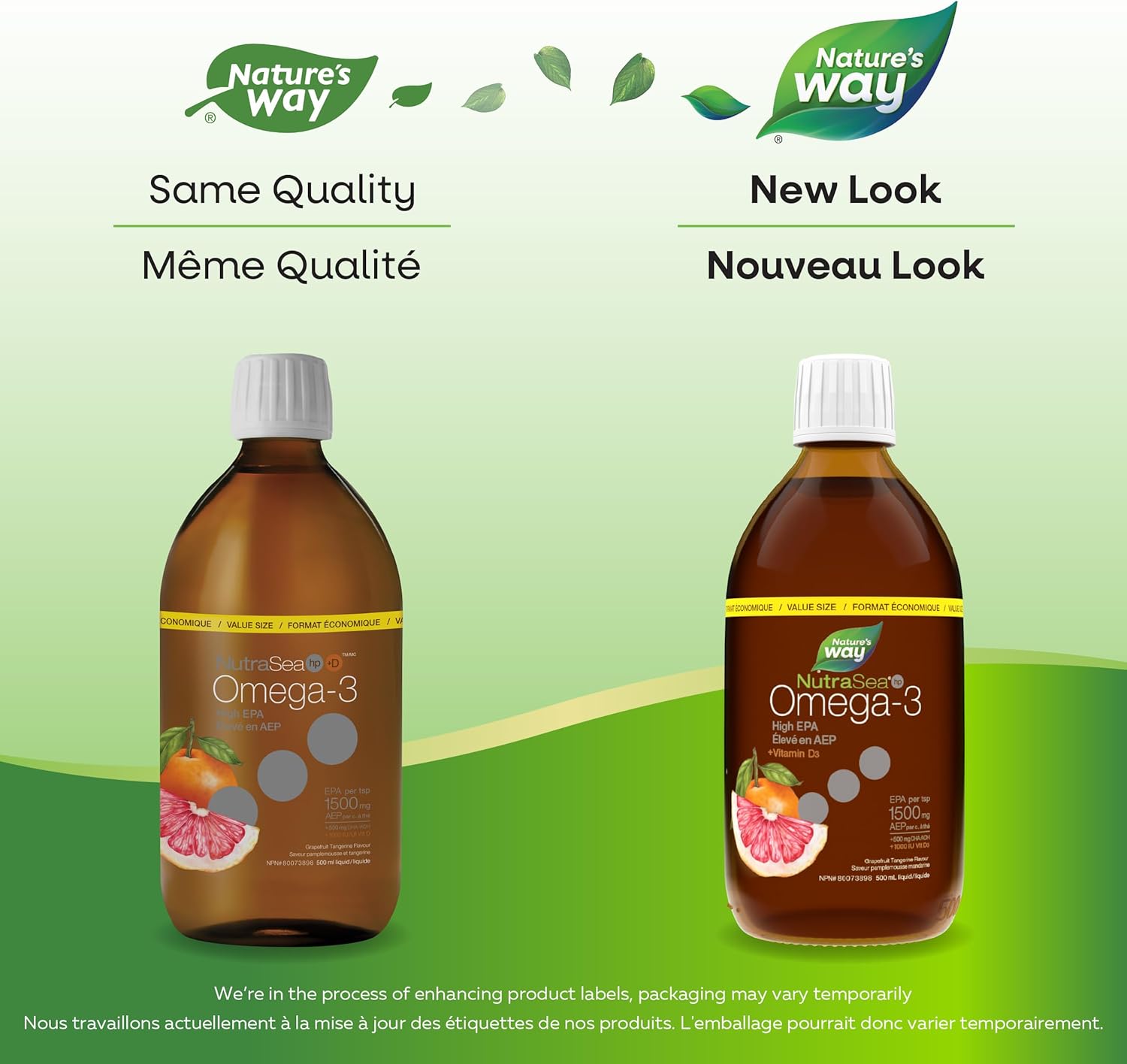 NutraSea HP+D™, High Potency Omega 3 + Vitamin D Supplement, Grapefruit Tangerine, 500 ML Liquid