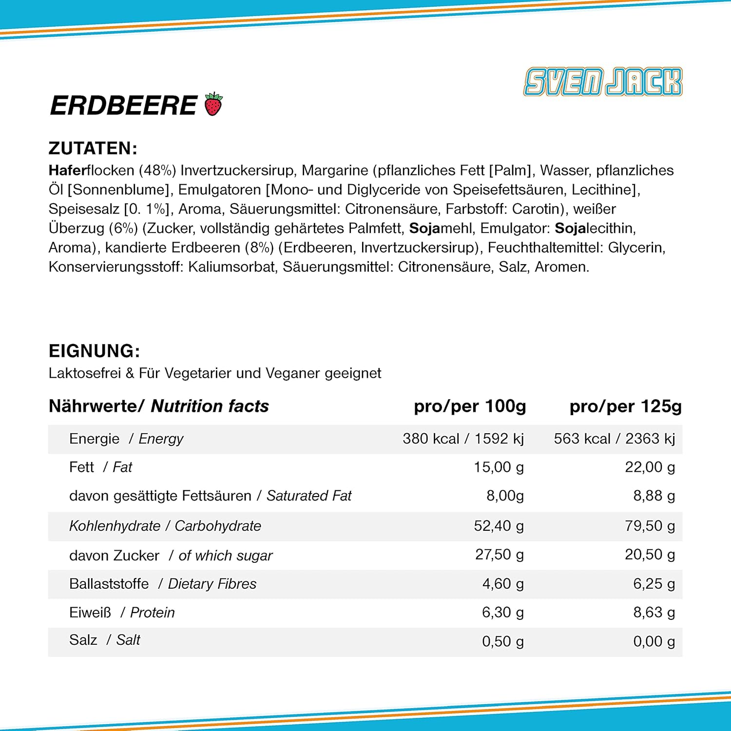 SvenJack Vegan Oat Bar Strawberry - 24 × 125g - High‑Fibre, Low‑Sugar, Gluten‑Free Oatmeal Energy Snack with Strawberries