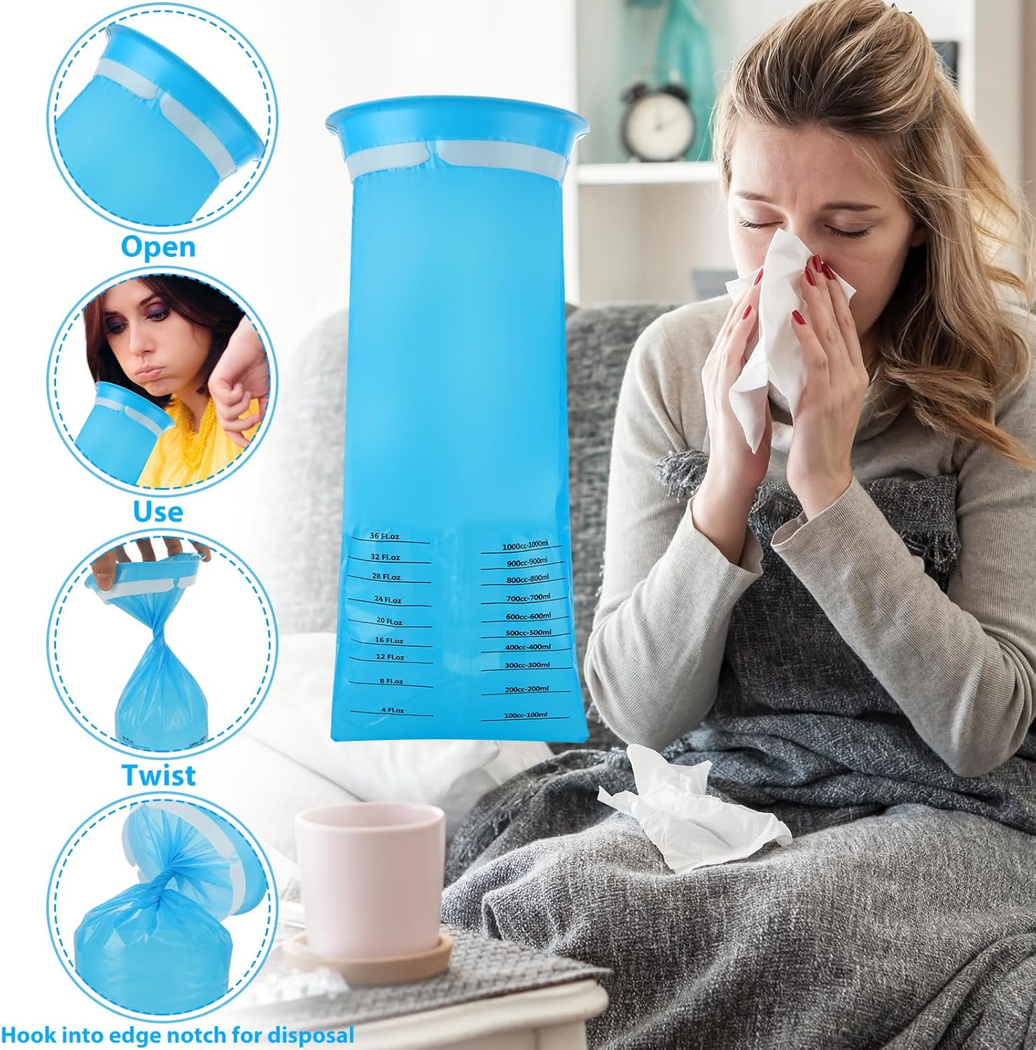Acrux7 100 Pack Vomit Bags Disposable Emesis Bag for Car Boat Travel
