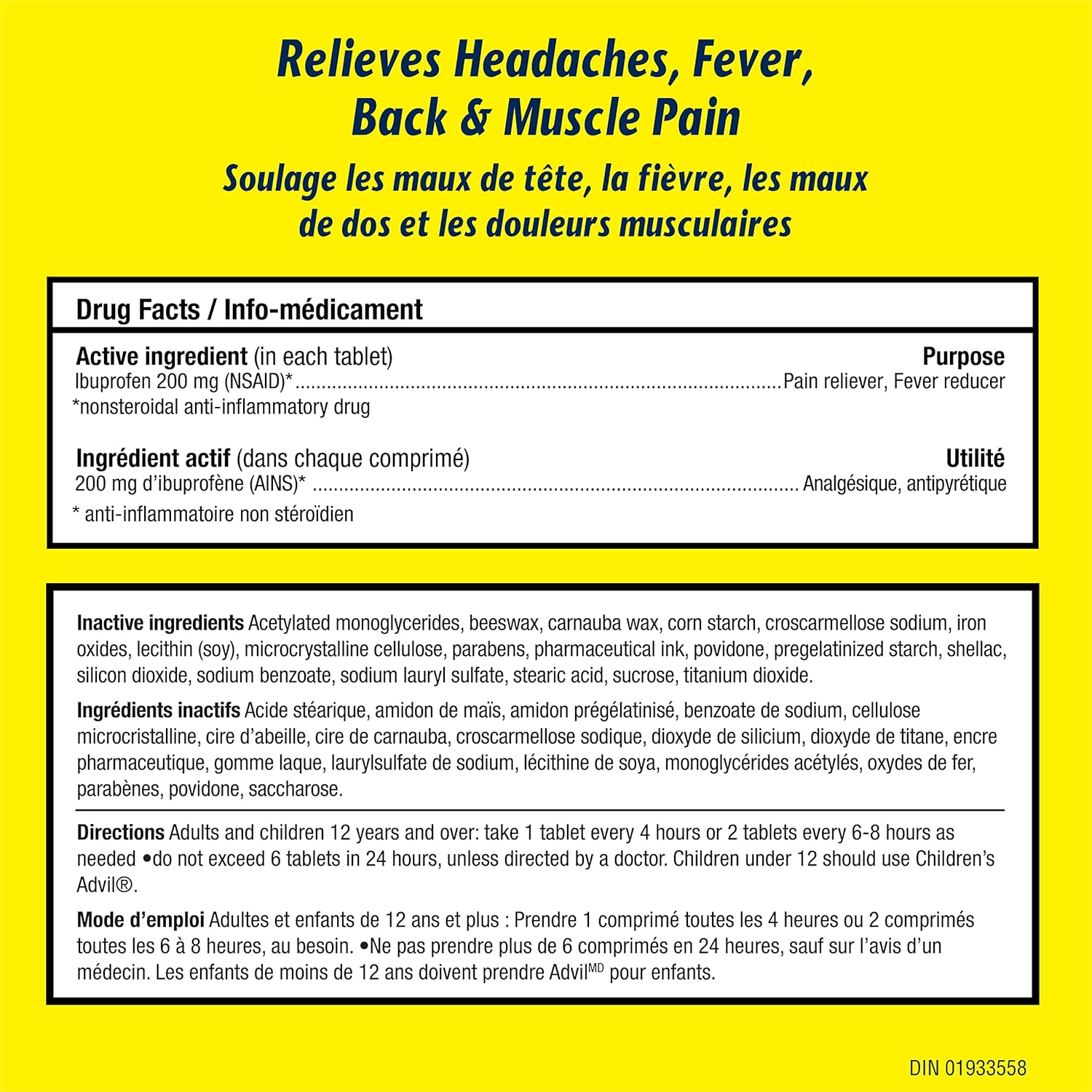 Fast-acting Advil Regular Strength Ibuprofen Tablets provide effective pain relief from headaches, muscle and joint pain, cold and flu, period and menstrual pain, backaches, toothaches, and pain from inflammation or physical overexertion. They also provide fast, effective pain relief from tension headaches, muscle sprains and strains, migraine pain, and dental pain. Advil also relieves aches and pains due to the common cold and temporarily reduces fever. Advil has provided fast, effective fever and pain relief for over 25 years. This package includes one 50-count bottle of Advil Regular Strength Tablets (200 mg ibuprofen). Advil is a non-steroidal anti-inflammatory drug (NSAID) that when taken as directed, is a fast and effective pain reliever and fever reducer.