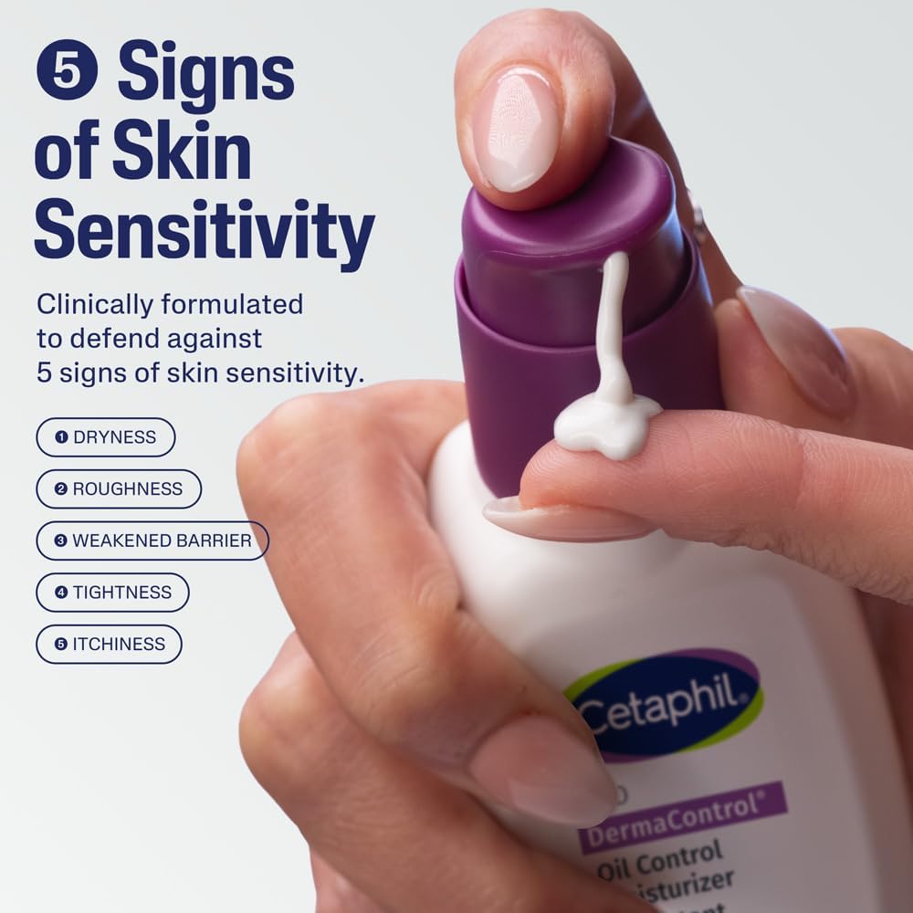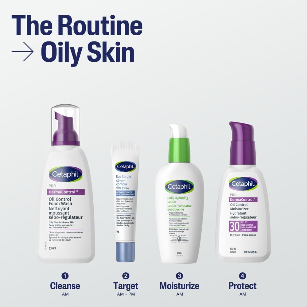 Cetaphil DERMACONTROL Oil Control Moisturizer SPF 30 Advanced 3-in-1 lotion provides facial hydration, shine control and SPF 30 sun protection. This ceramide infused lotion replenishes the moisture barrier of the skin and contains Zinc Gluconate to absorb excess oil for a shine-free, matte finish appearance. Lightweight, absorbs quickly with long-lasting hydration and provides broad spectrum UVA/UVB protection. Non-comedogenic and non-greasy.