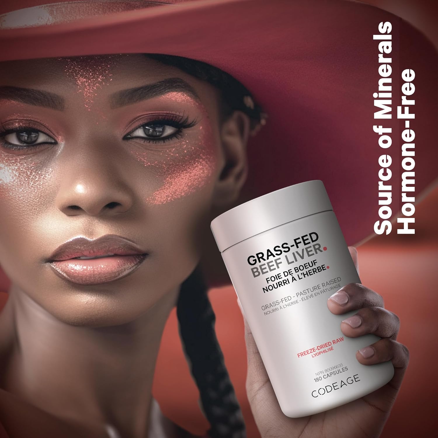 Codeage Grass Fed Beef Liver Supplement - Freeze Dried, Non-Defatted, Desiccated Beef Liver Glandulars Bovine Pills - Liver Health Foods Meat - Argentina Beef Vitamins For Liver - Non-GMO -180 Capsules