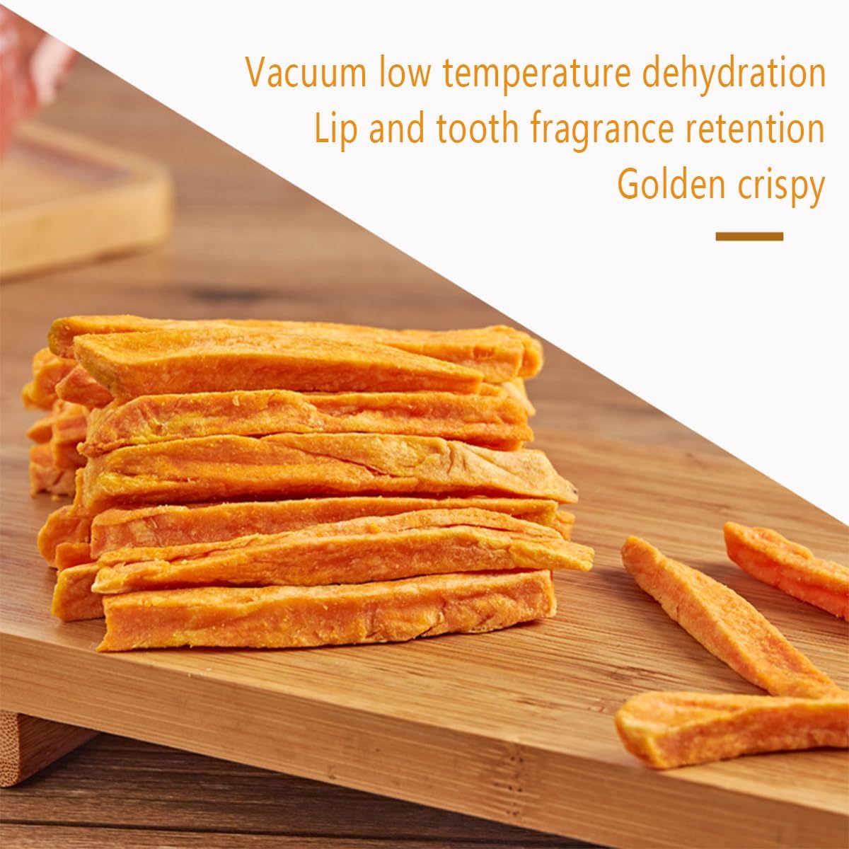 The non-traditional frying or drying process locks in the nutritional content of sweet potatoes, allowing them to be nutritious and delicious while eating snacks. Even if you eat too much coarse grains of sweet potatoes, they will not add extra burden. Dried potato chips have a crispy taste, rich flavor, and a dehydration rate of over 90%, retaining the original flavor of sweet potatoes! A must-have for working from home, tasting with family and colleagues, and sharing sweetness together.