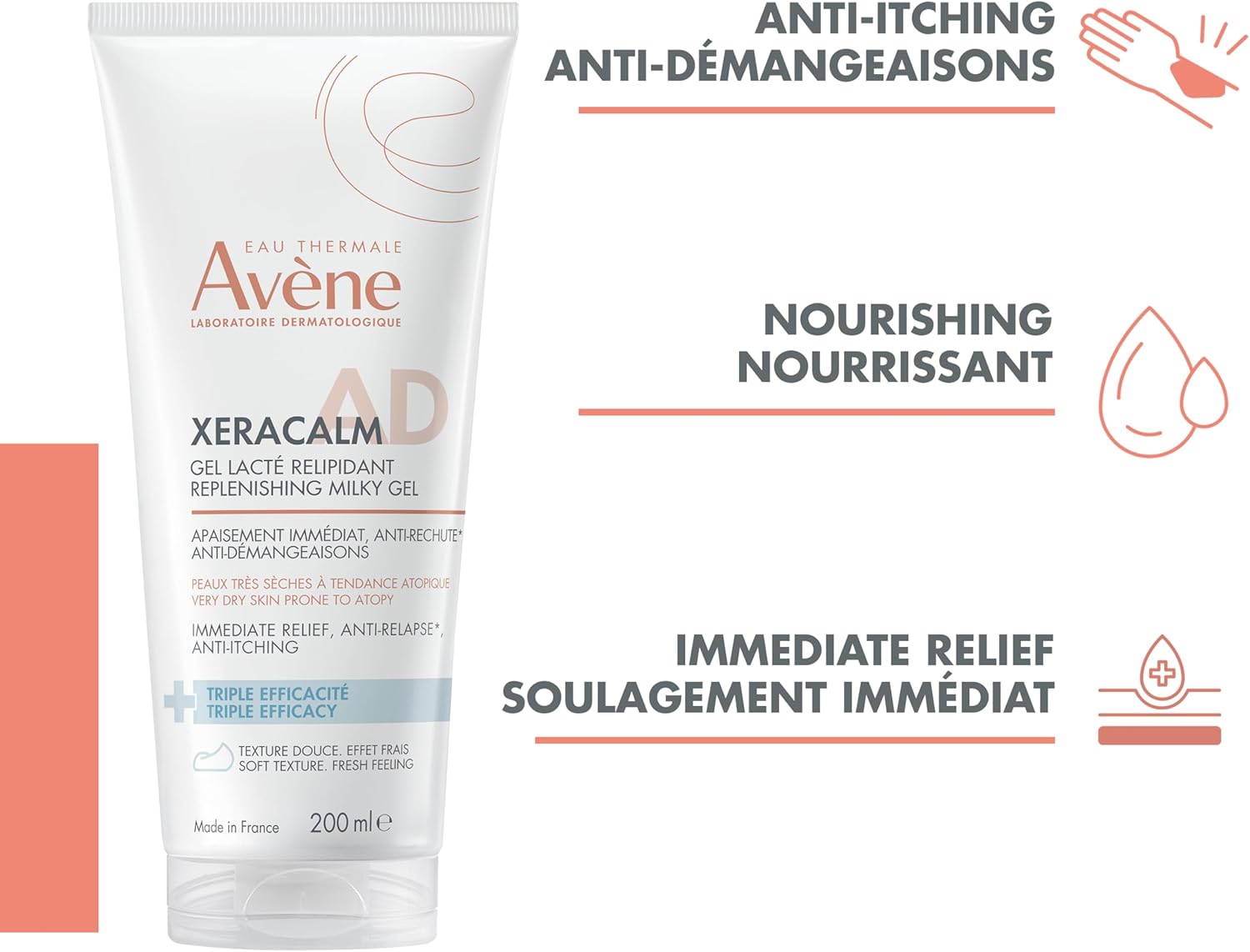 Eau Thermale Avène XeraCalm A.D Replenishing Milky Gel for Very Dry & Eczema-Prone Skin, Dermatologist Tested & Suitable for Sensitive Skin, 200 ml