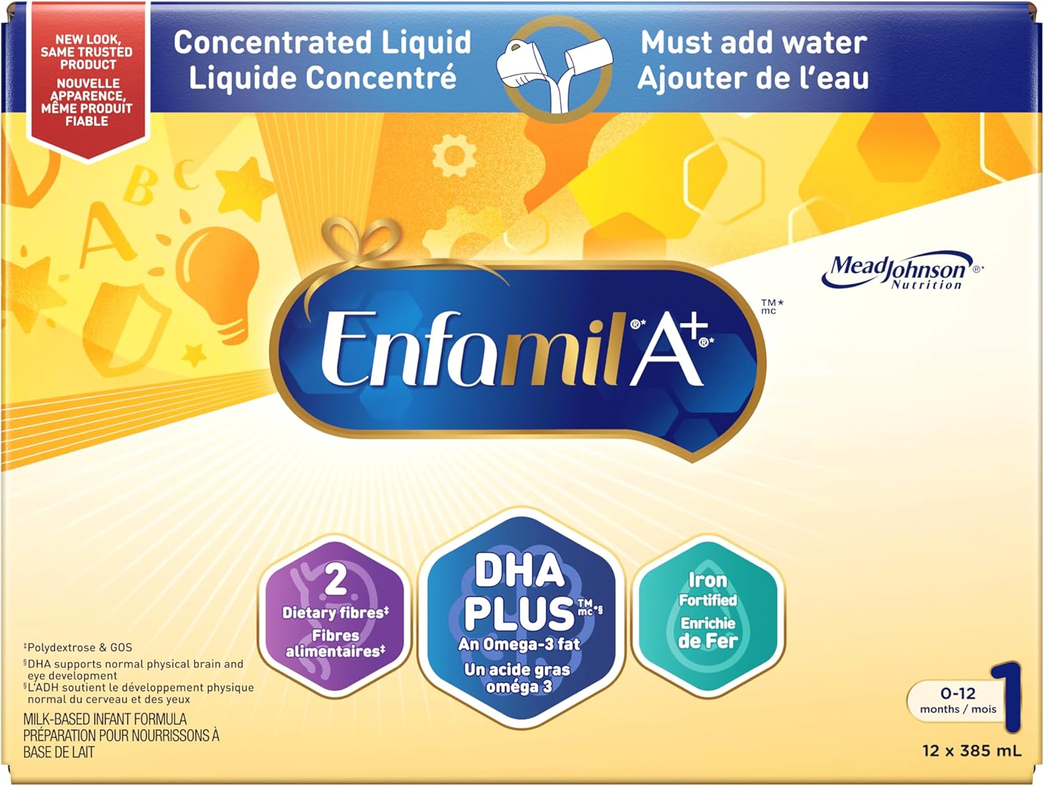 Enfamil A+ Baby Formula, with Brain Building DHA, Concentrated Liquid, Age 0-12 Months, 385mL x 12 Cans