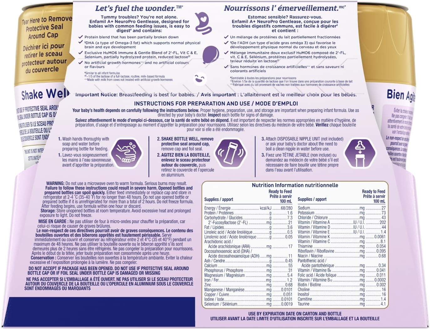 Enfamil A+ NeuroPro Gentlease, Baby Formula, Ready to Feed, Nipple-Ready Bottles, with Brain Building DHA, 0-12 Months, 6 x 237mL