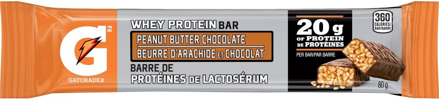 Gatorade Whey Protein Bar - Peanut Butter Chocolate, Multi-Pack, 12 Bars, 960 g (Pack of 4)