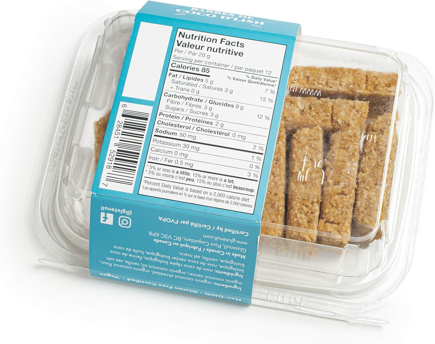 Glutenull Bakery Organic Coco D'Lish Bar - Raw, 240 Grams (Packaging may vary)